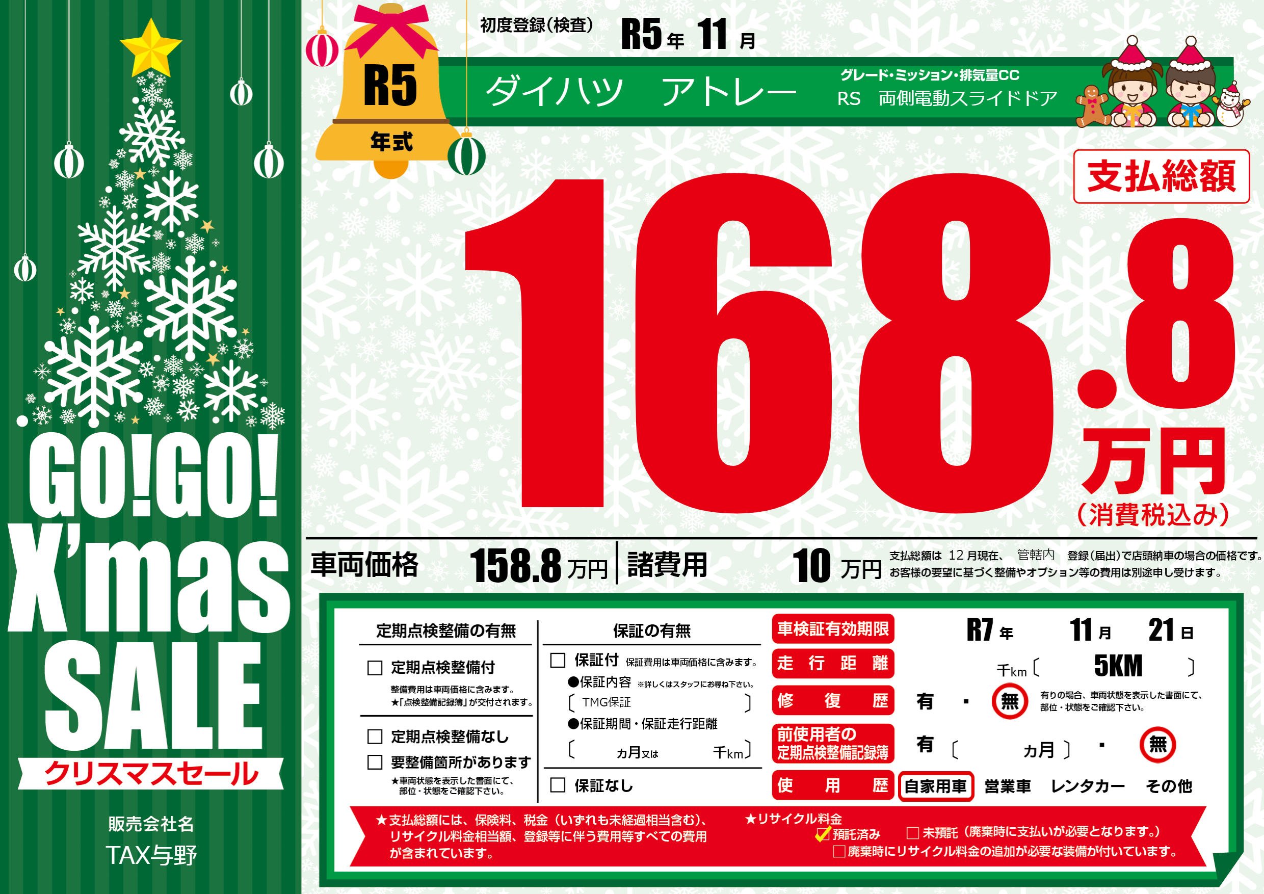 | 車検制限 | R7年 11月 21日 | ||