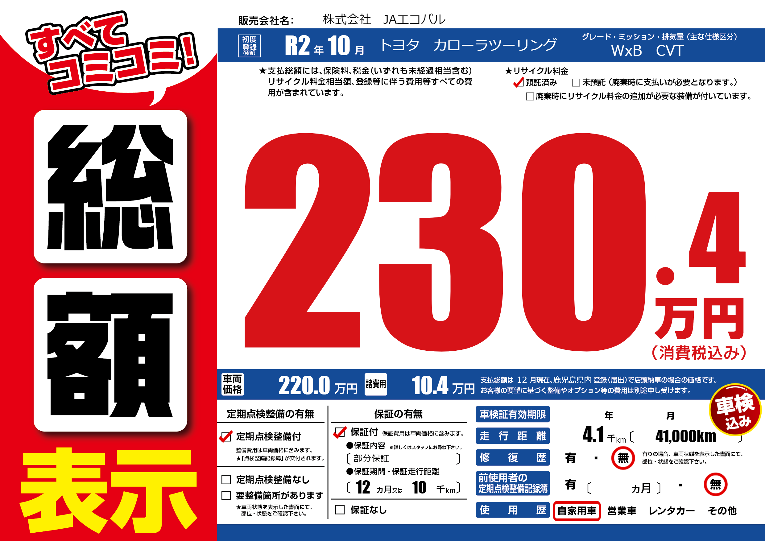 | 定期点検整備 | 定期点検整備あり | ||