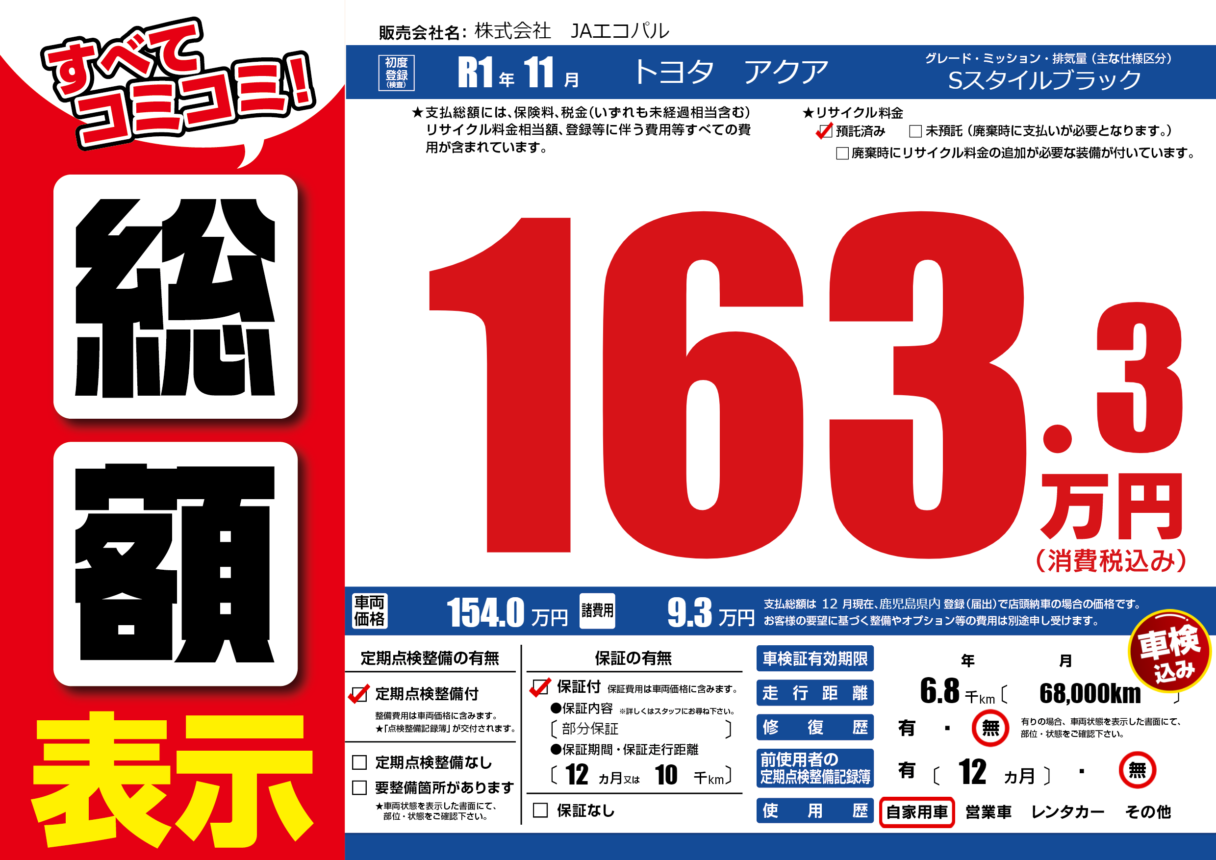| 定期点検整備 | 定期点検整備あり | ||