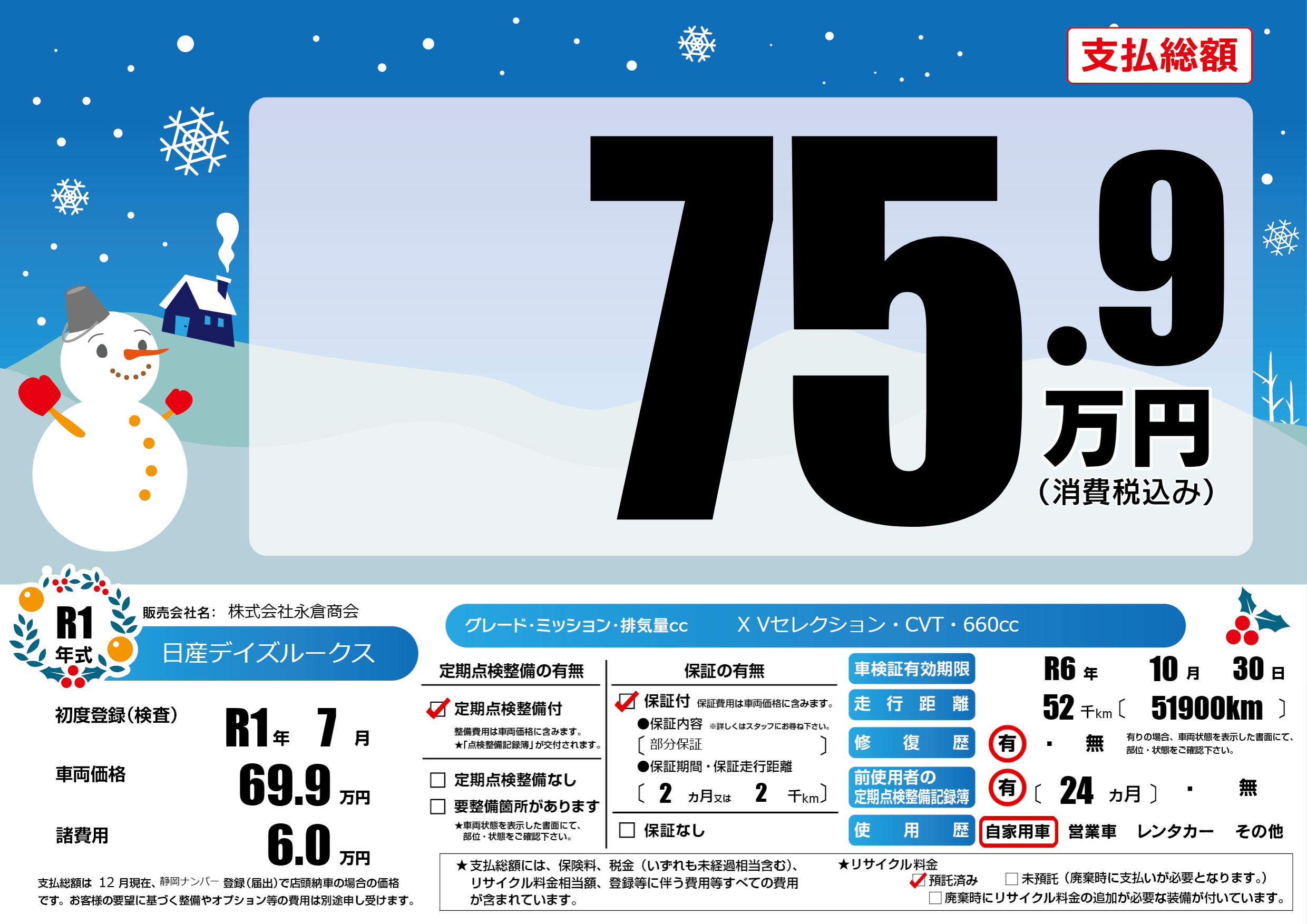 | 車名 | 日産デイズルークス | グレード ミッション 排気量 |