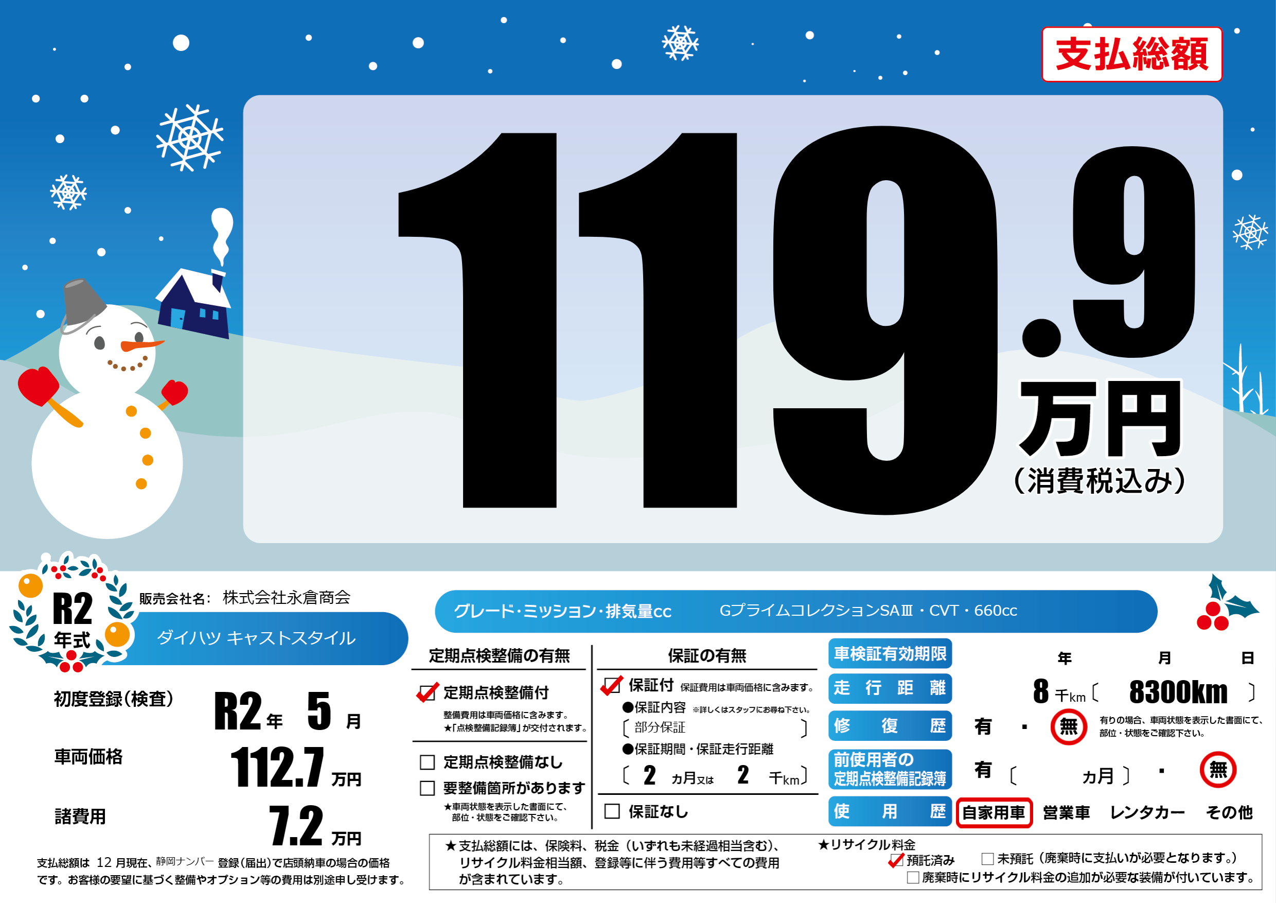 | 定期点検整備 | 定期点検整備あり | ||