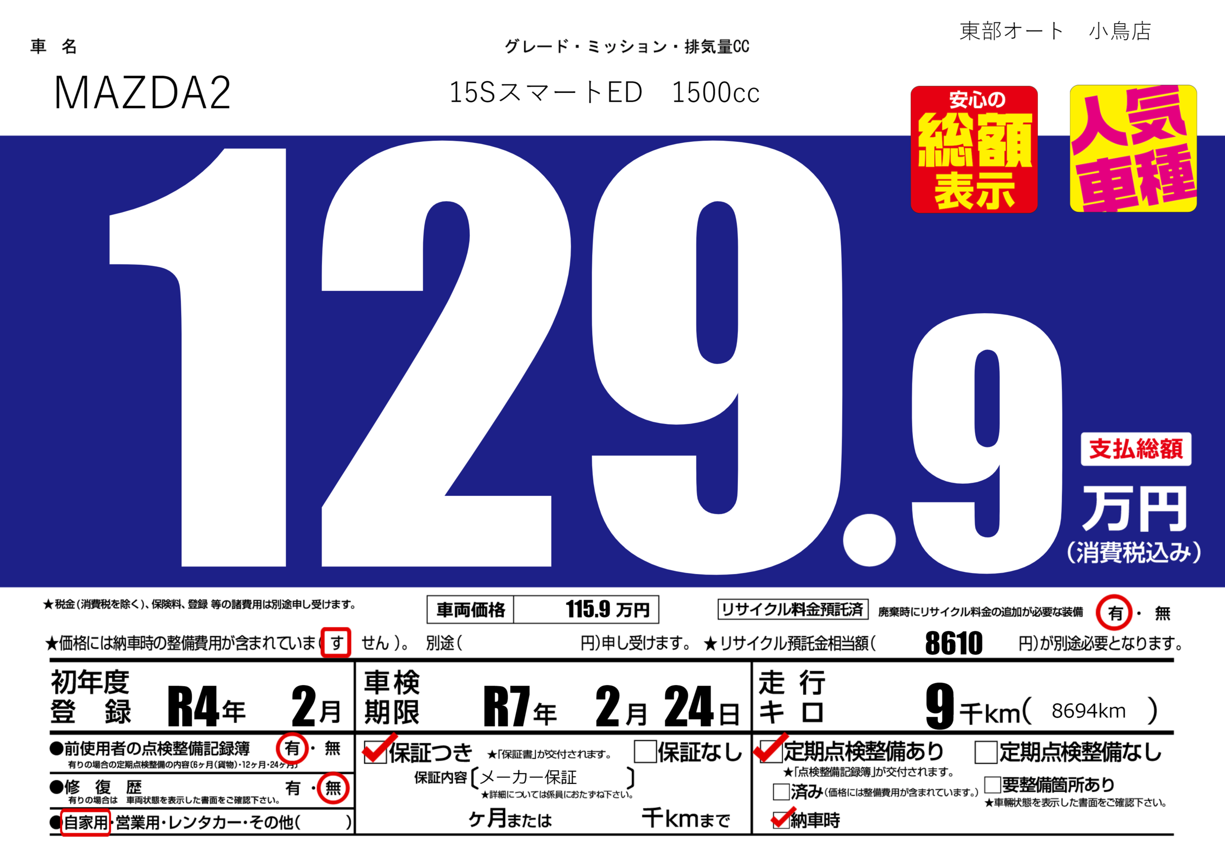 | 車名 | MAZDA2 | グレード ミッション 排気量 |