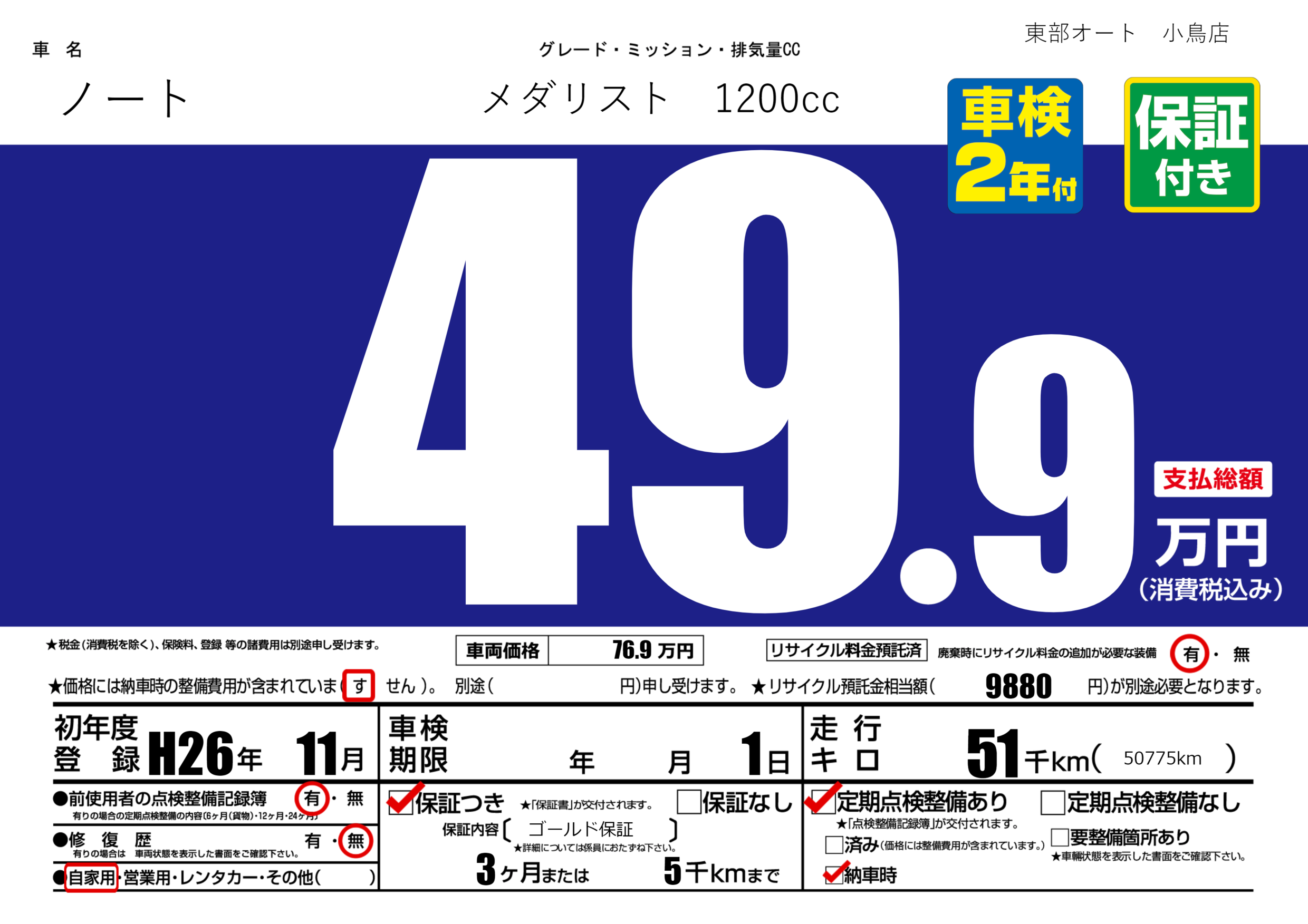 | 定期点検整備 | 定期点検整備あり 納車時あり | ||