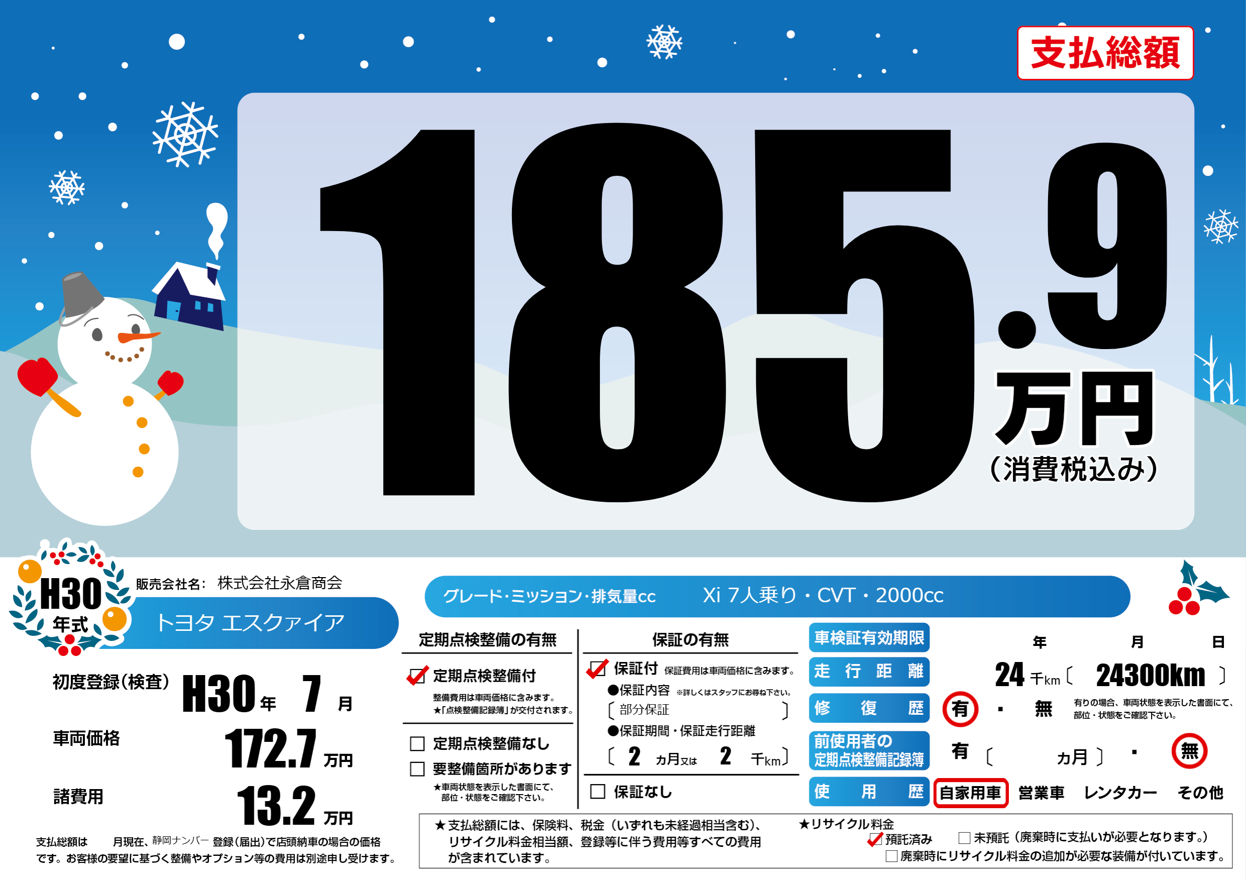 | 車名 | トヨタ エスクァイア | グレード ミッション 排気量 |