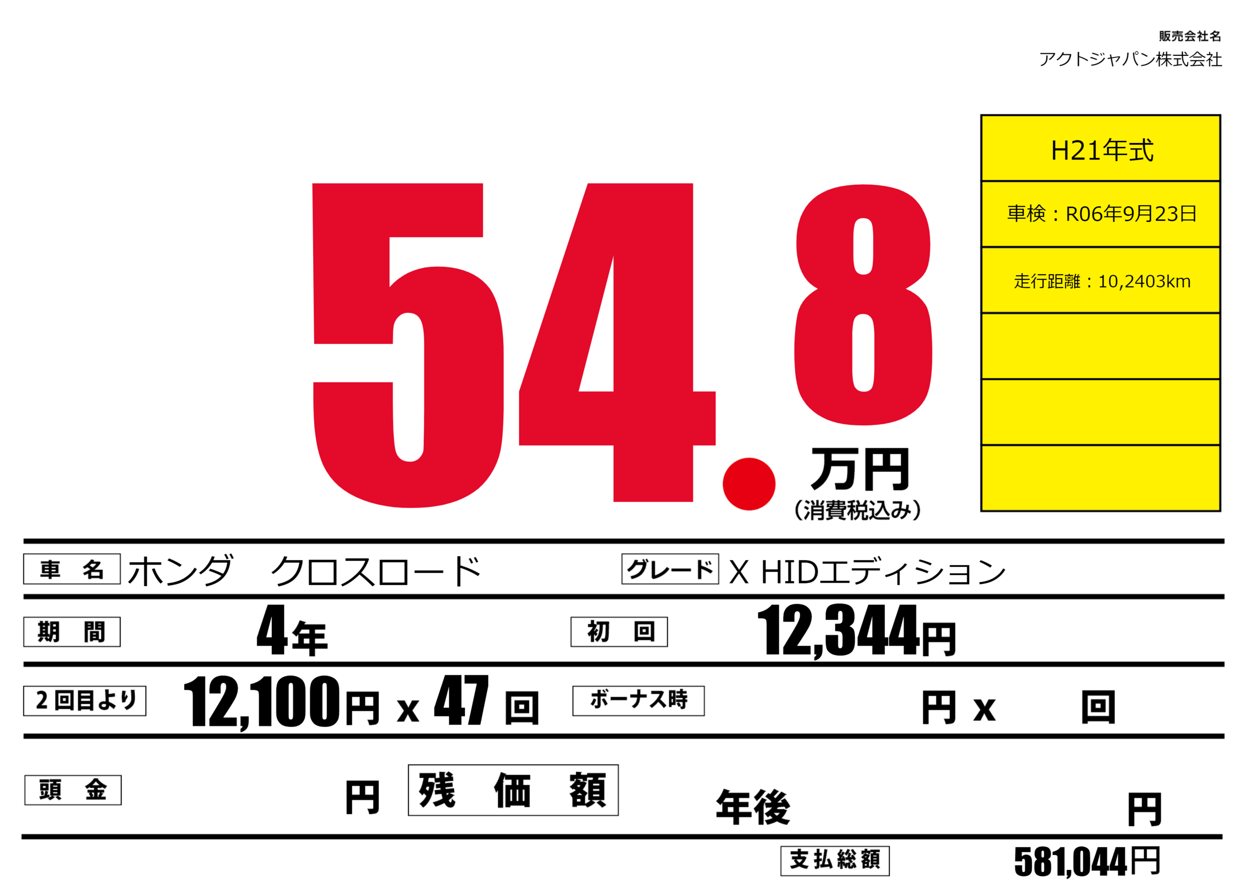 | 車検制限 | - 年 - 月 - 日 | ||