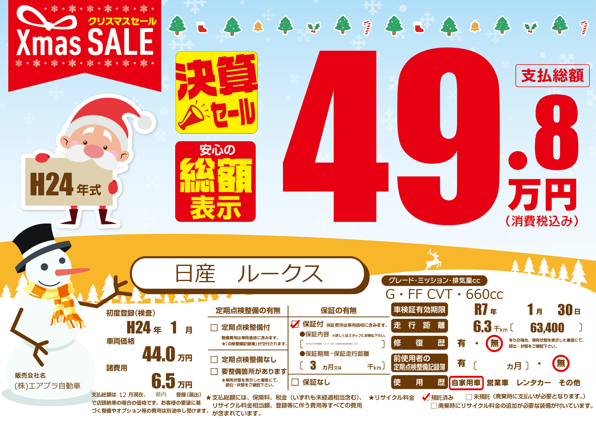 | 車名 | 日産 ルークス | グレード ミッション 排気量 |
