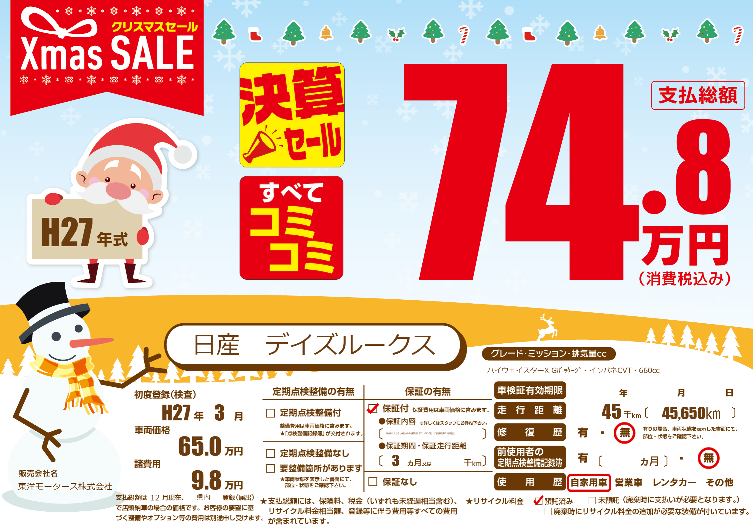 | 走行キロ | 4.5万km | 初年度登録 | H27年3月 |