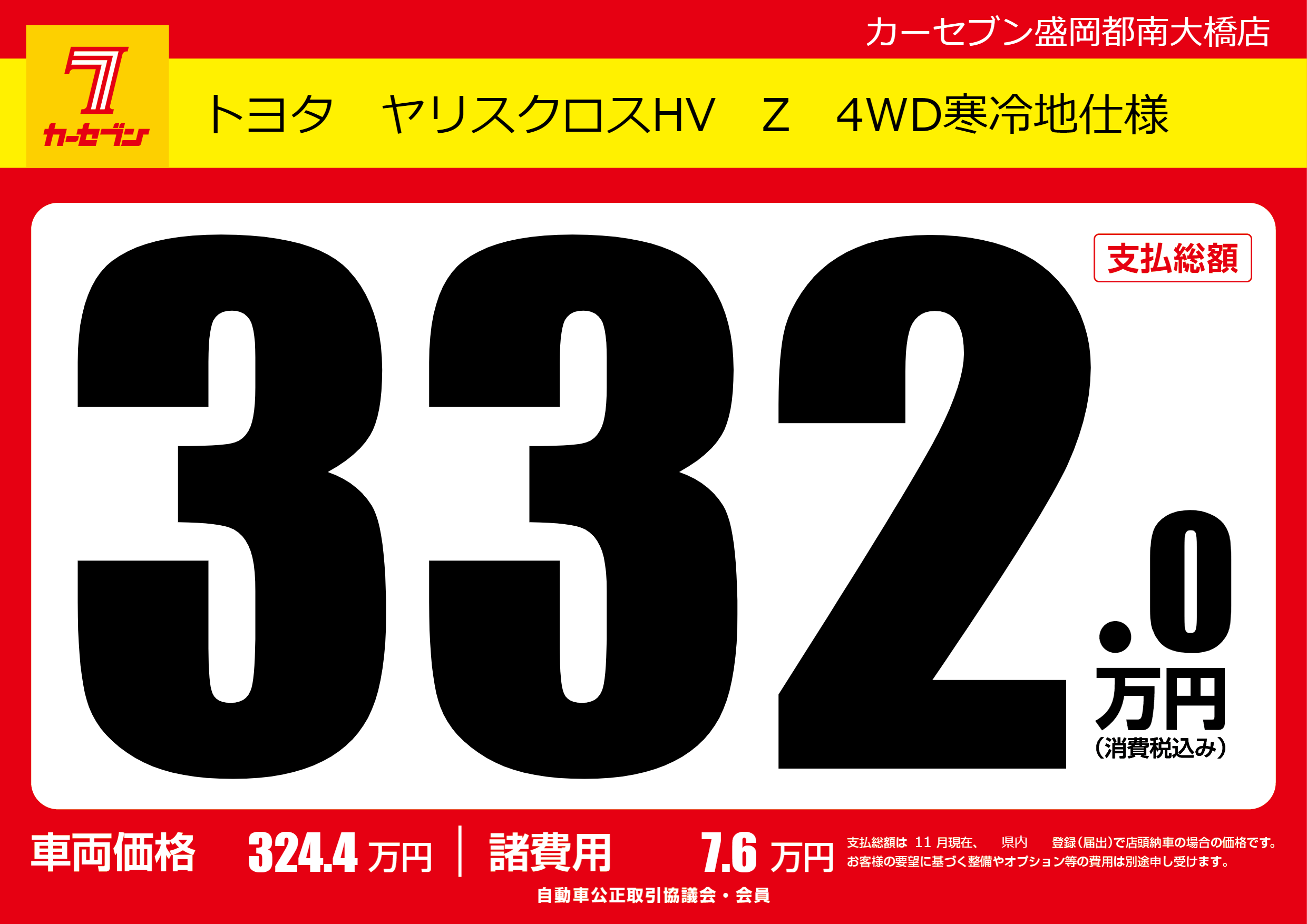 トヨタ ヤリスクロスHV Z 4WD寒冷地仕様