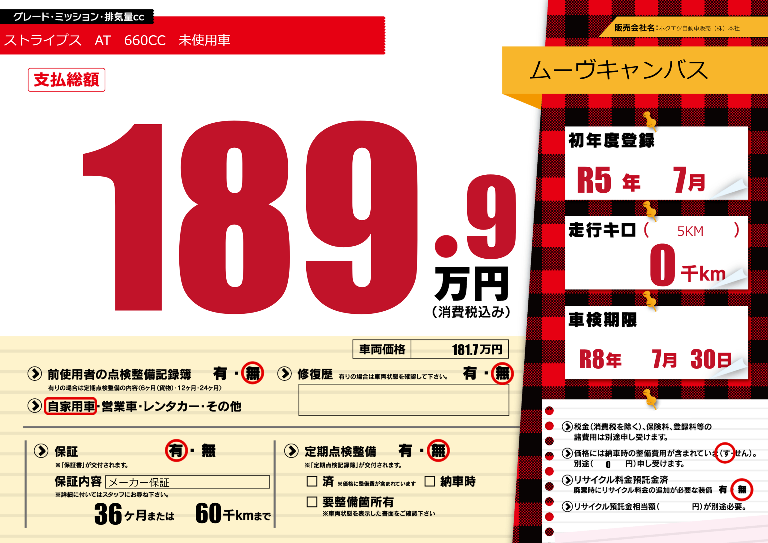 | 走行キロ | - | 初年度登録 | R5年7月 |
