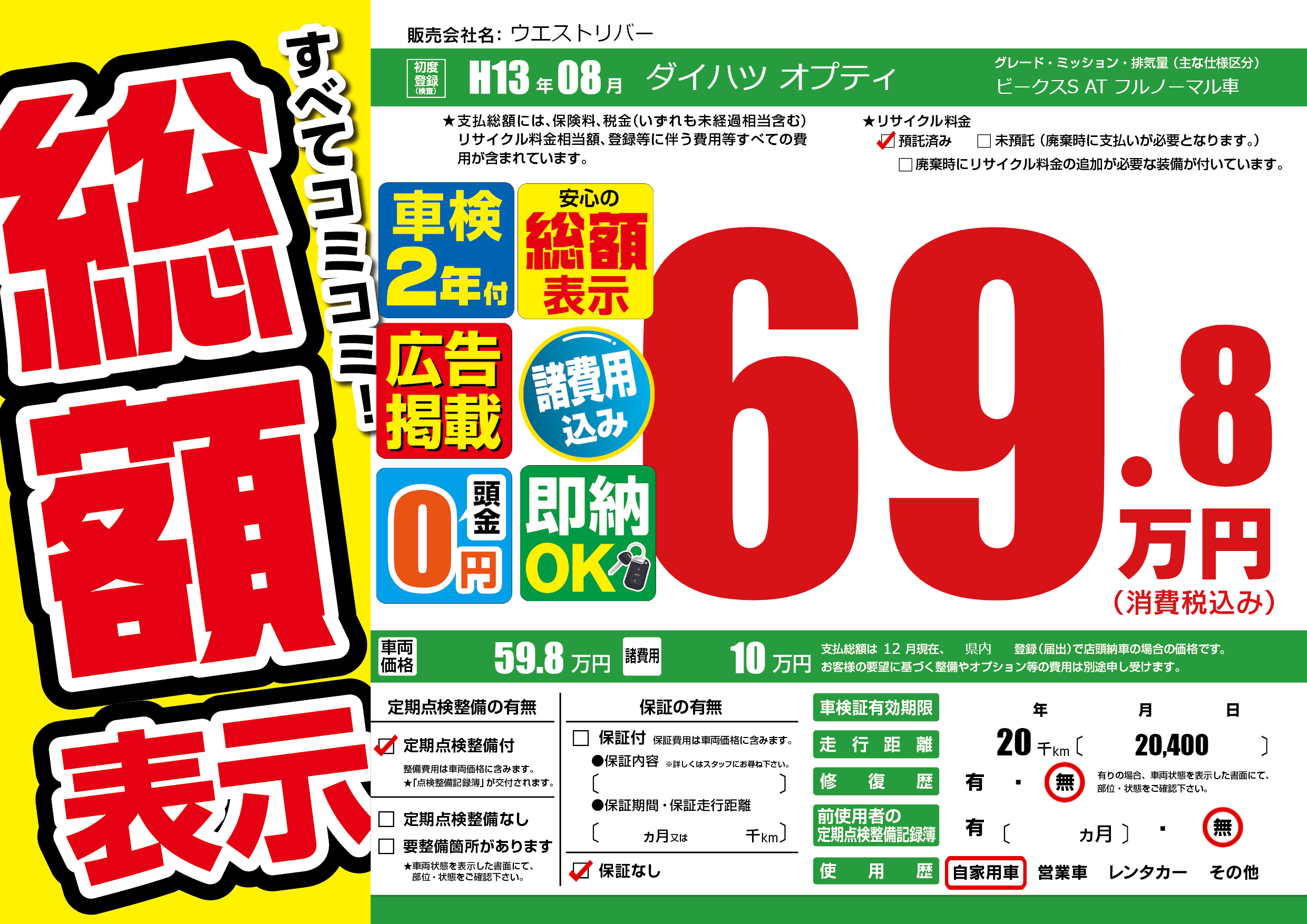 | 車名 | ダイハツ オプティ | グレード ミッション 排気量 |