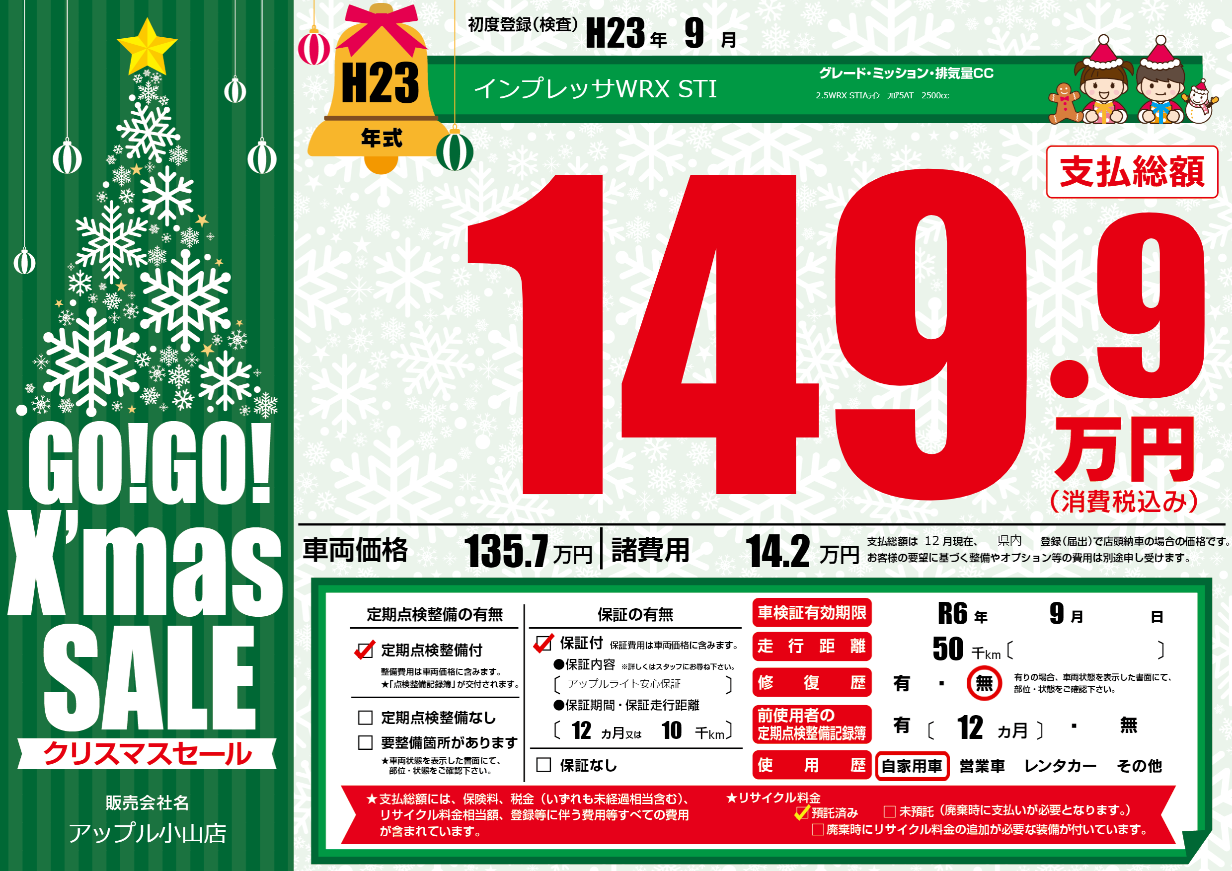 | 車名 | インプレッサWRX STI | グレード ミッション 排気量 |