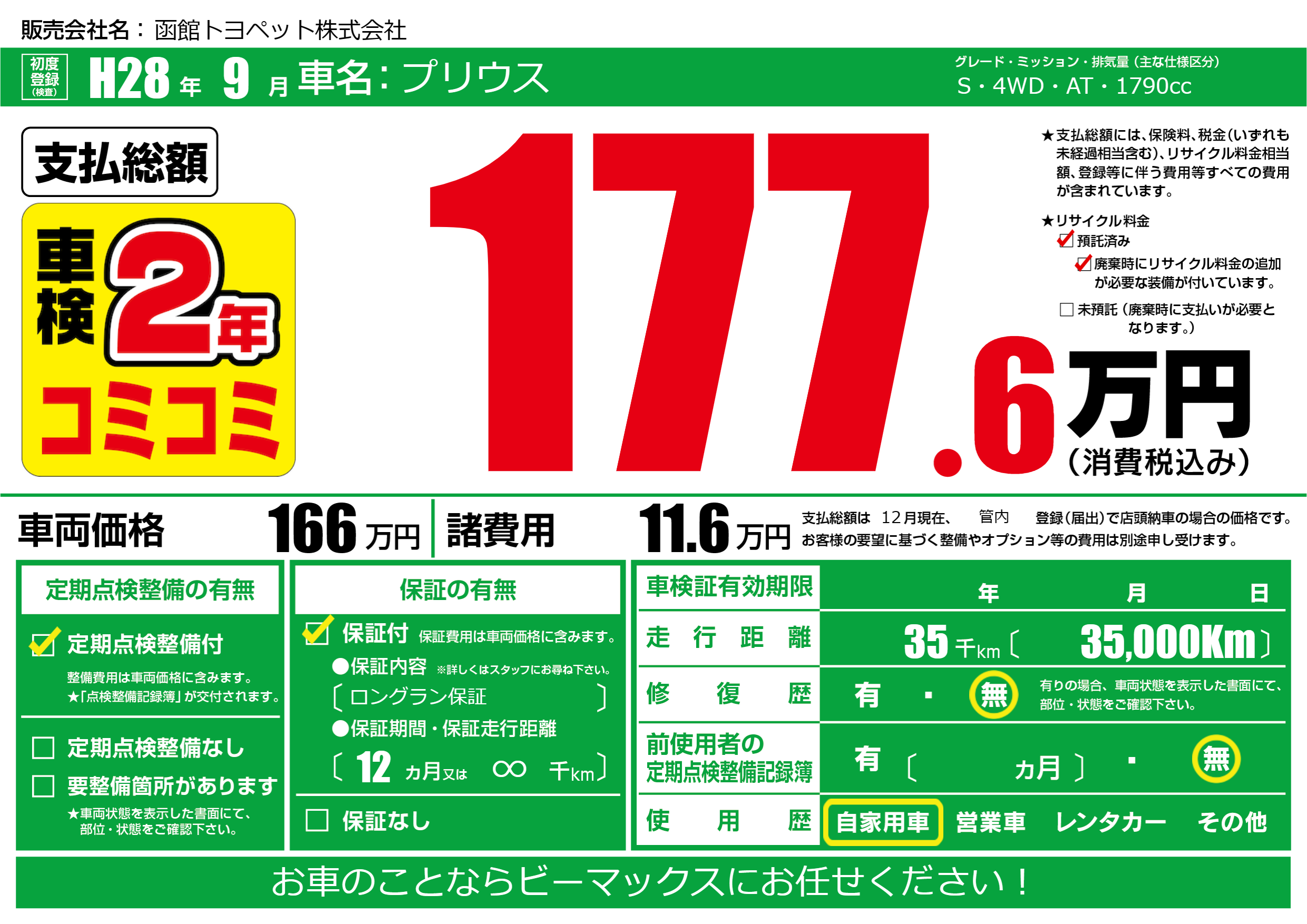 | 車名 | プリウス | グレード ミッション 排気量 |