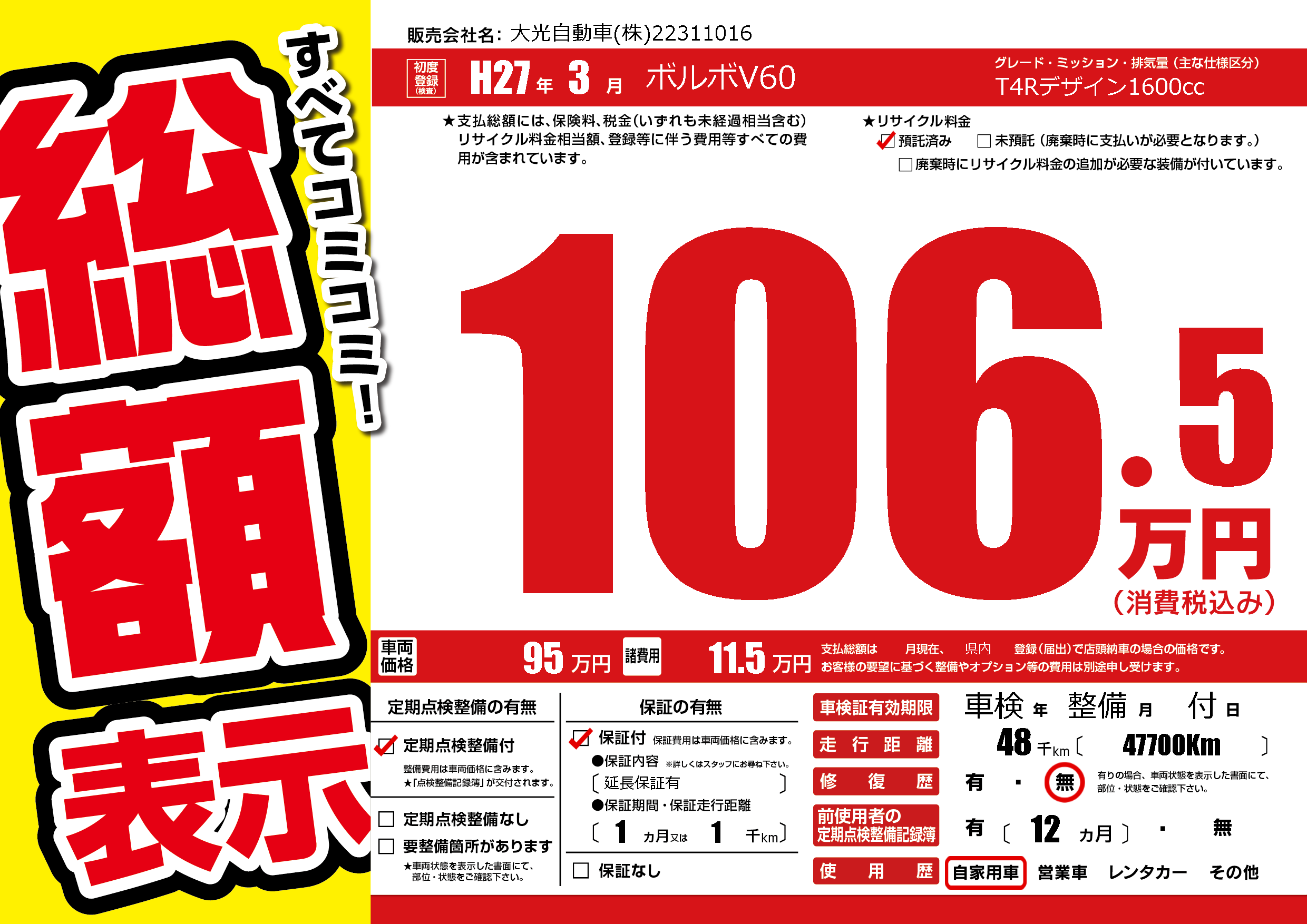 | 定期点検整備 | 定期点検整備あり | ||