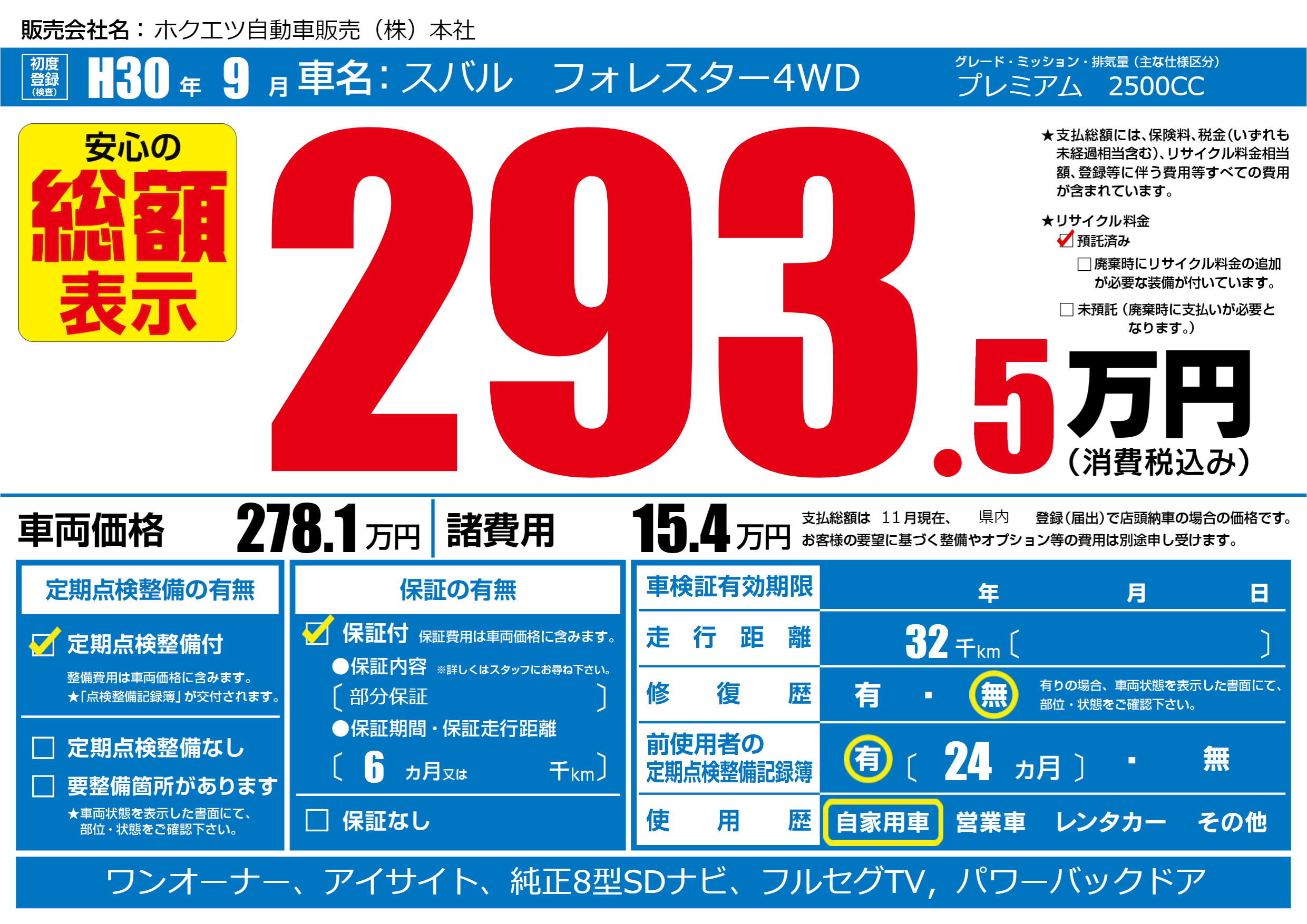 | 定期点検整備 | 定期点検整備あり | ||