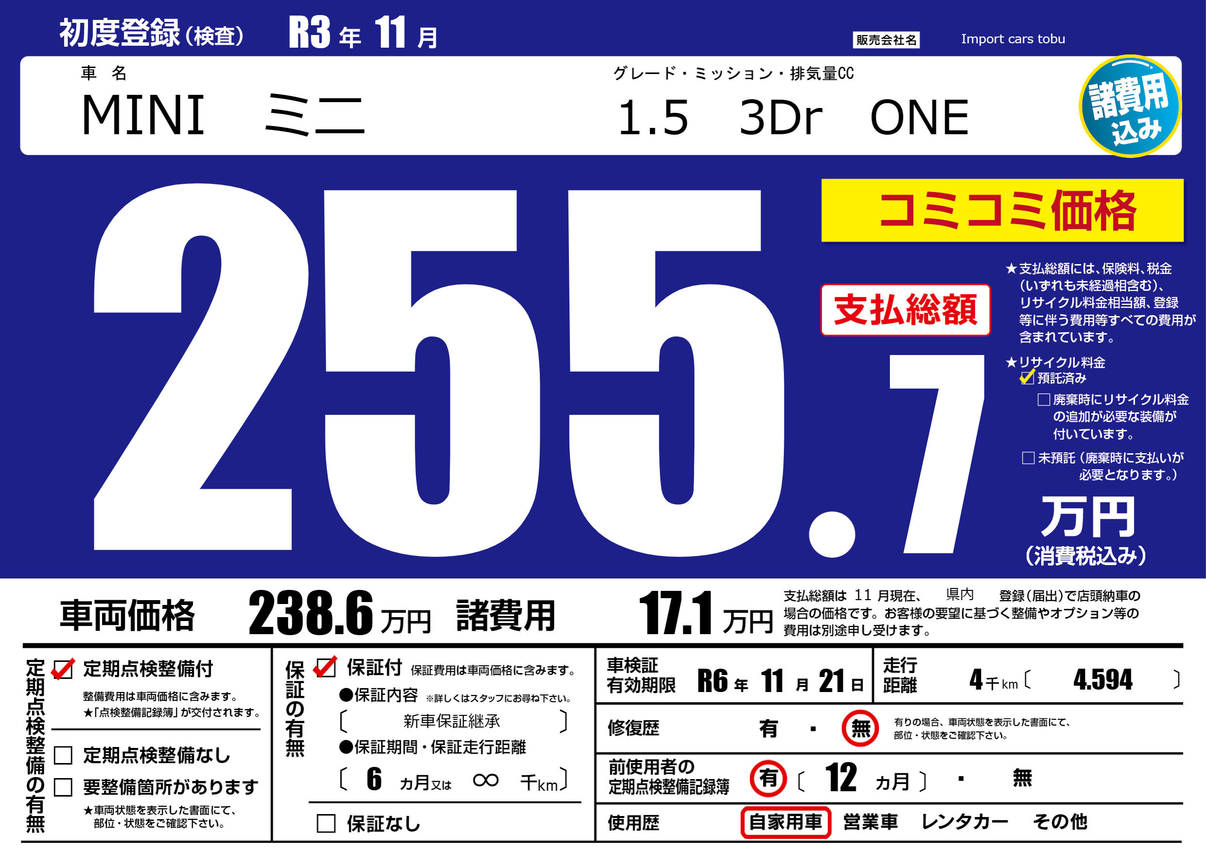 | 車検制限 | R6年 11月 21日 | ||
