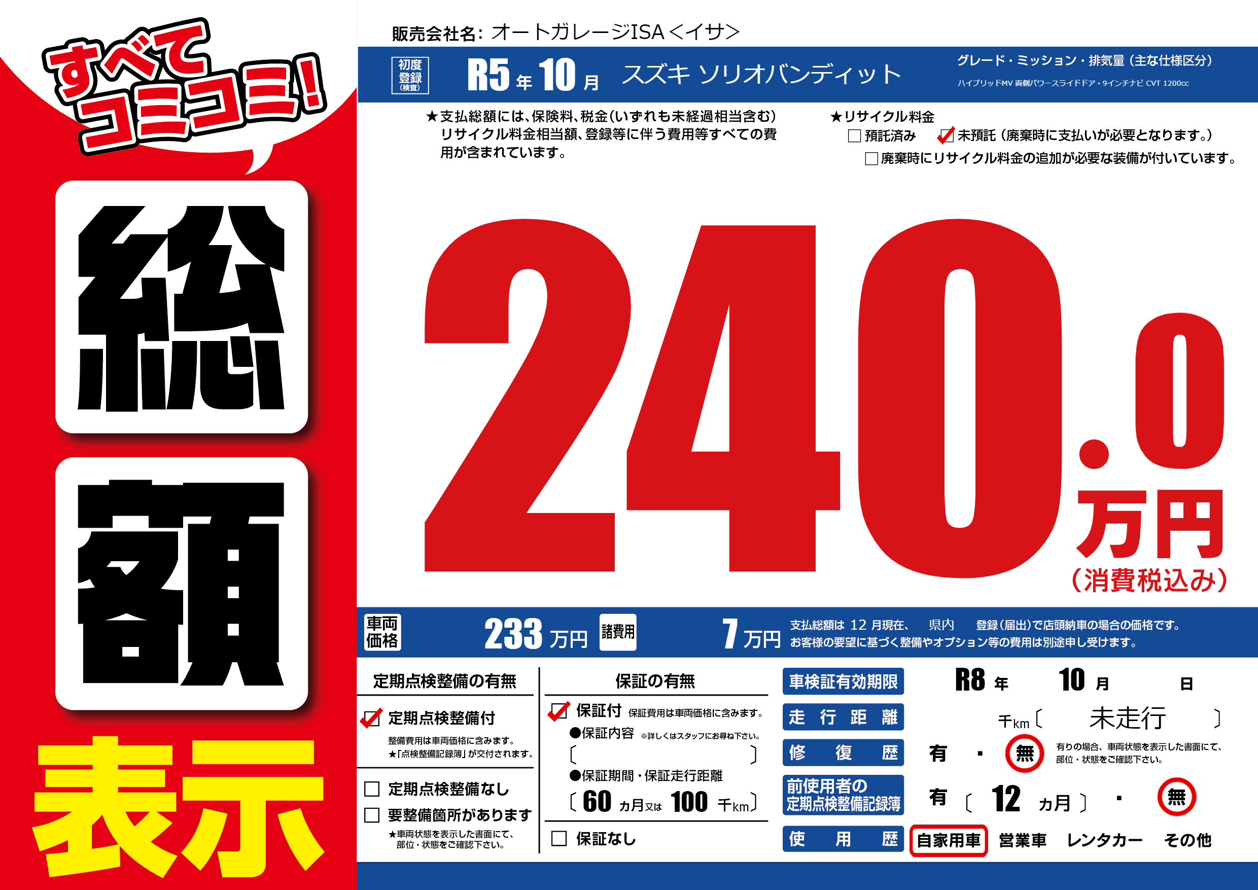 | 走行キロ | - | 初年度登録 | R5年10月 |