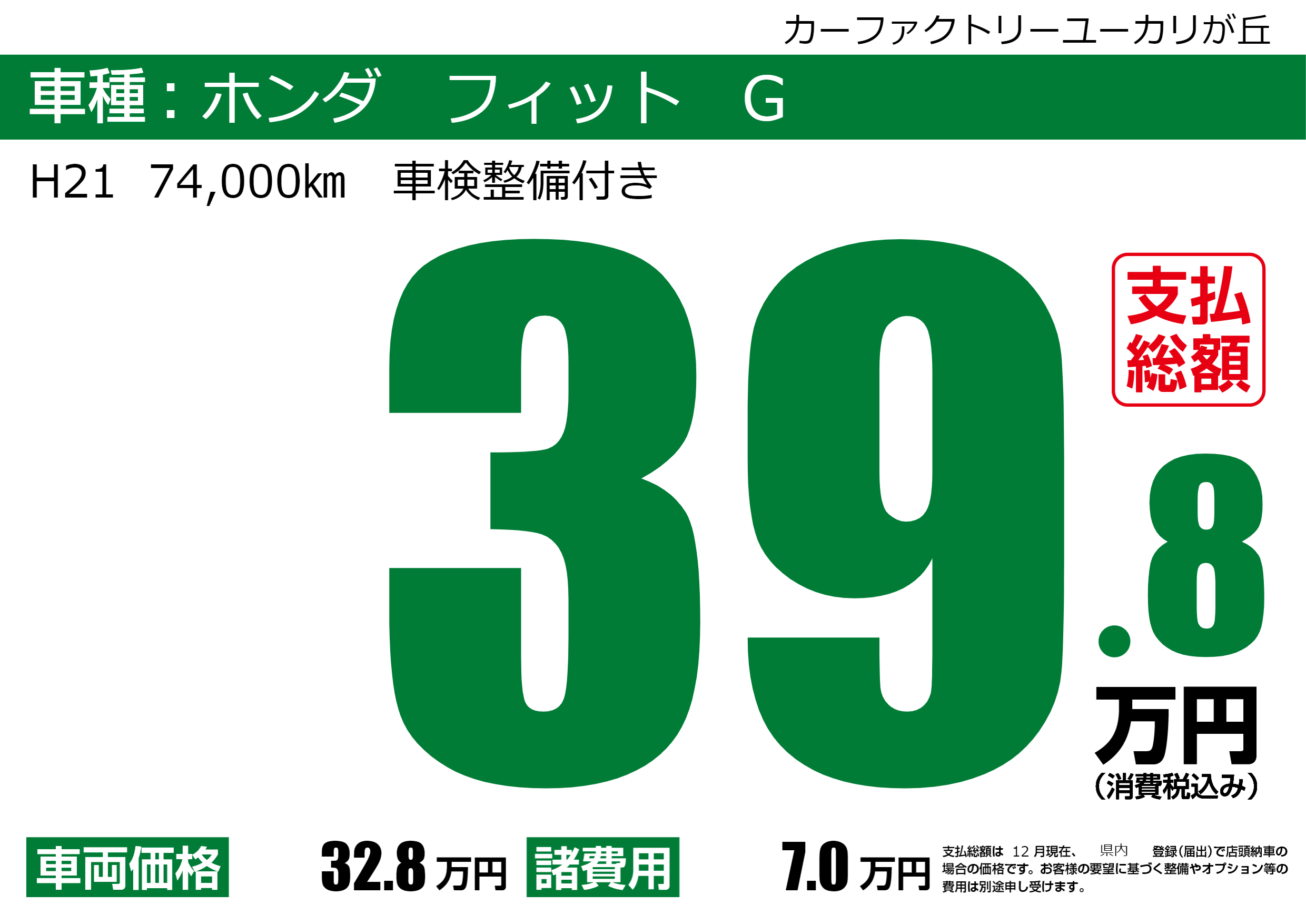 | 車名 | ホンダ フィット G | グレード ミッション 排気量 |