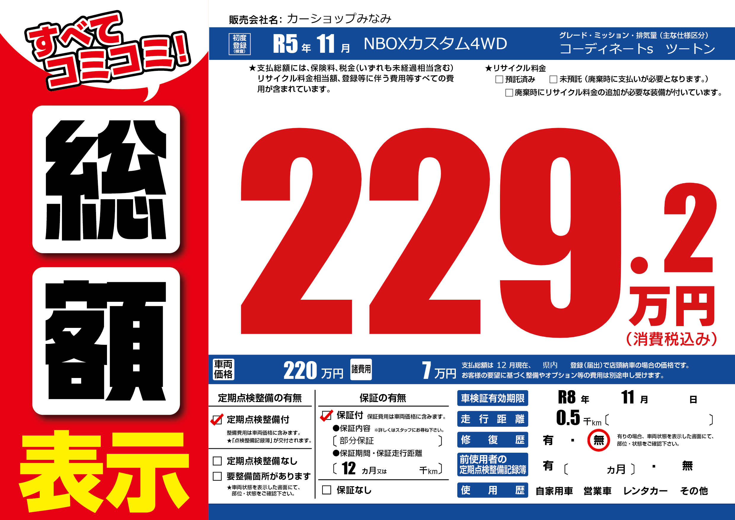 | 車検制限 | R8年 11月 - 日 | ||
