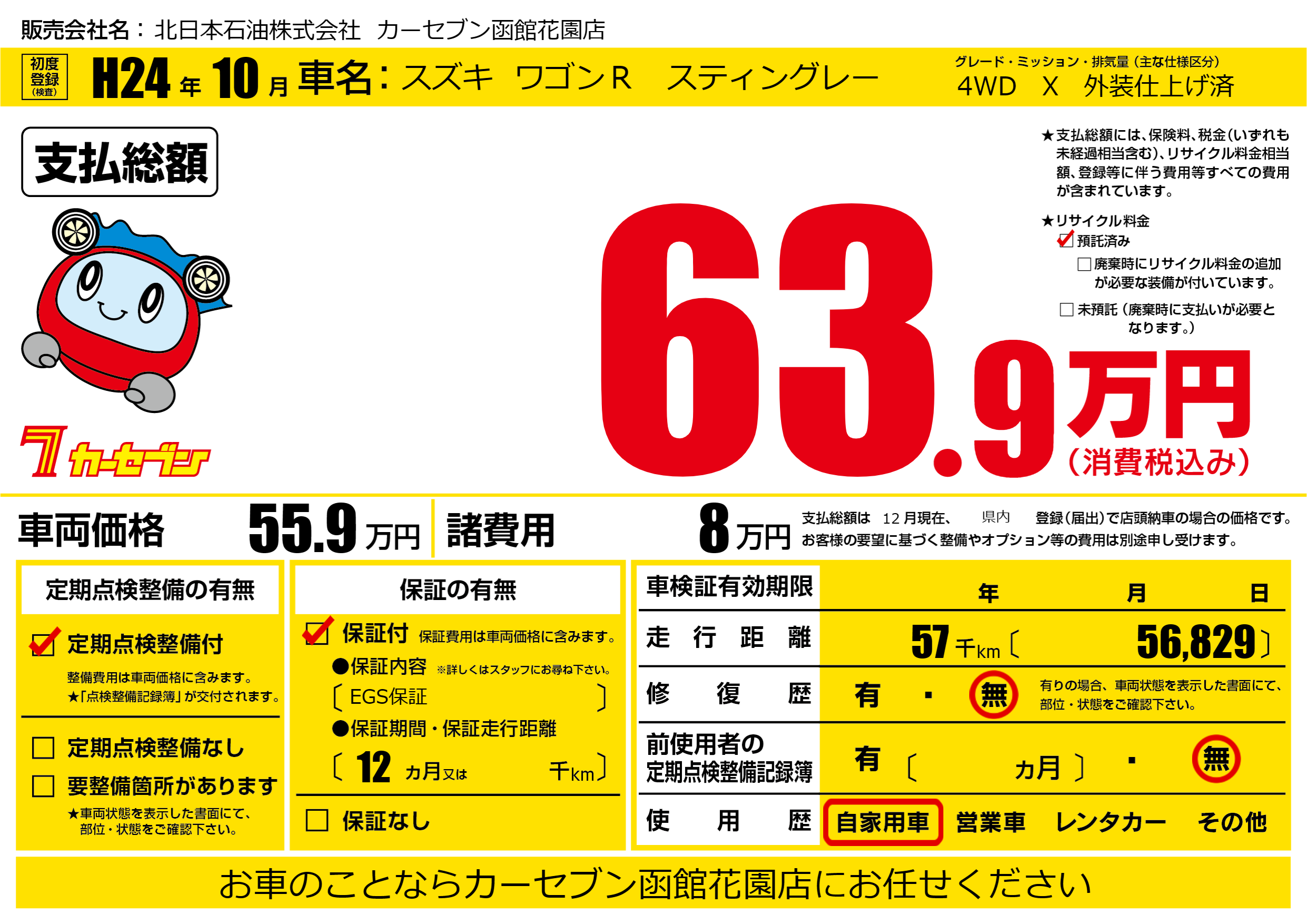 | 走行キロ | 5.7万km | 初年度登録 | H24年10月 |
