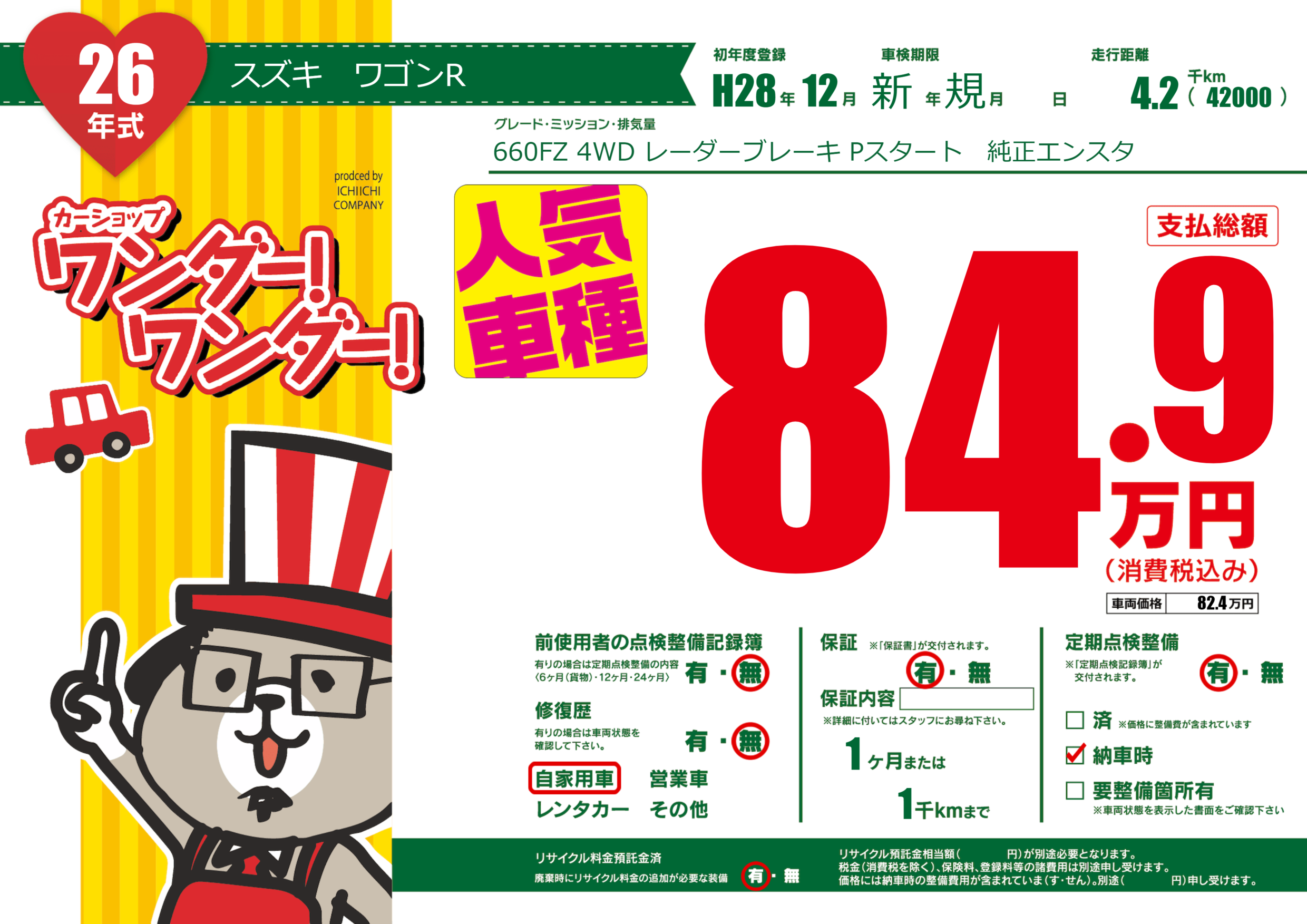| 車名 | スズキ ワゴンR | グレード ミッション 排気量 |
