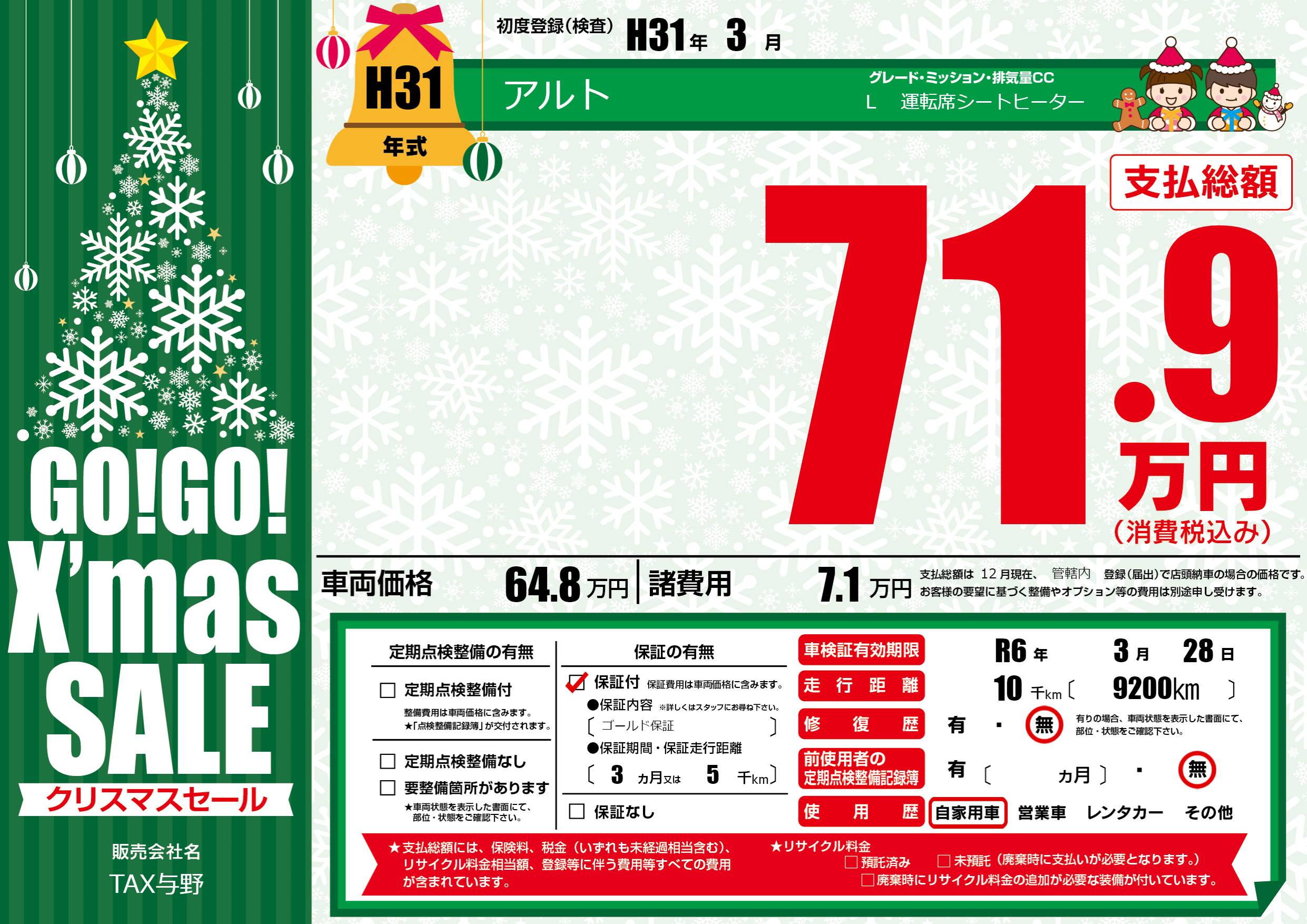 | 走行キロ | 1万km | 初年度登録 | H31年3月 |