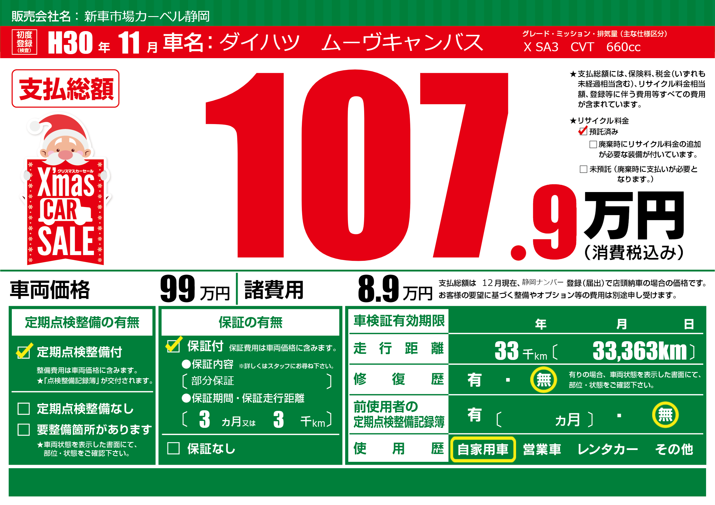 | 定期点検整備 | 定期点検整備あり | ||
