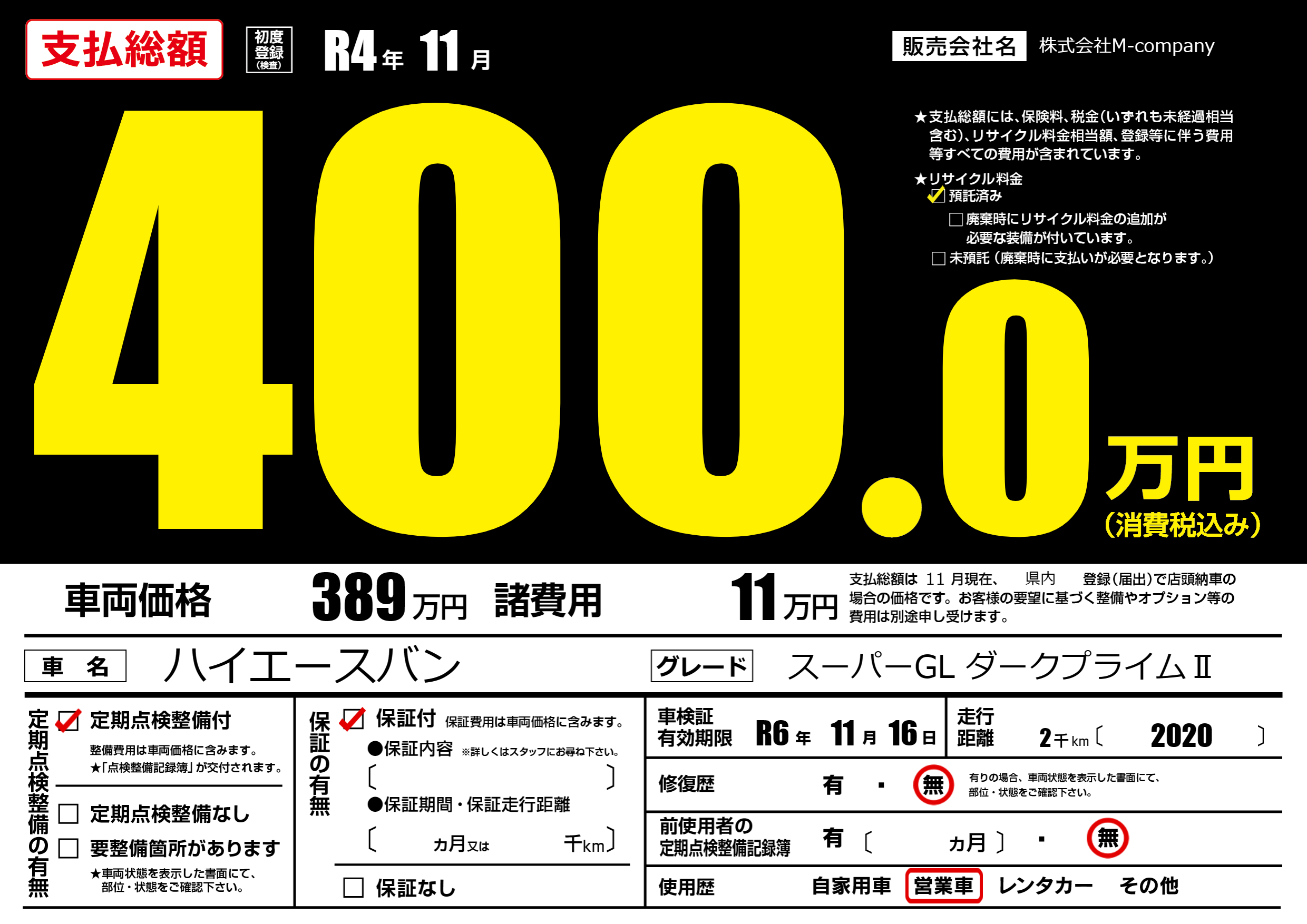 なし | 車検制限 | R6年11月16月 |