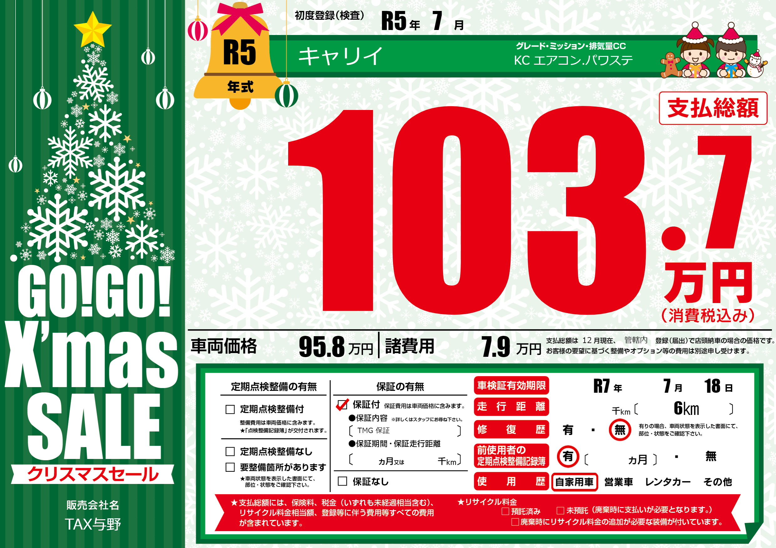 保証付き 保証内容(TMG 保証) ---ヶ月または()千kmまで |
