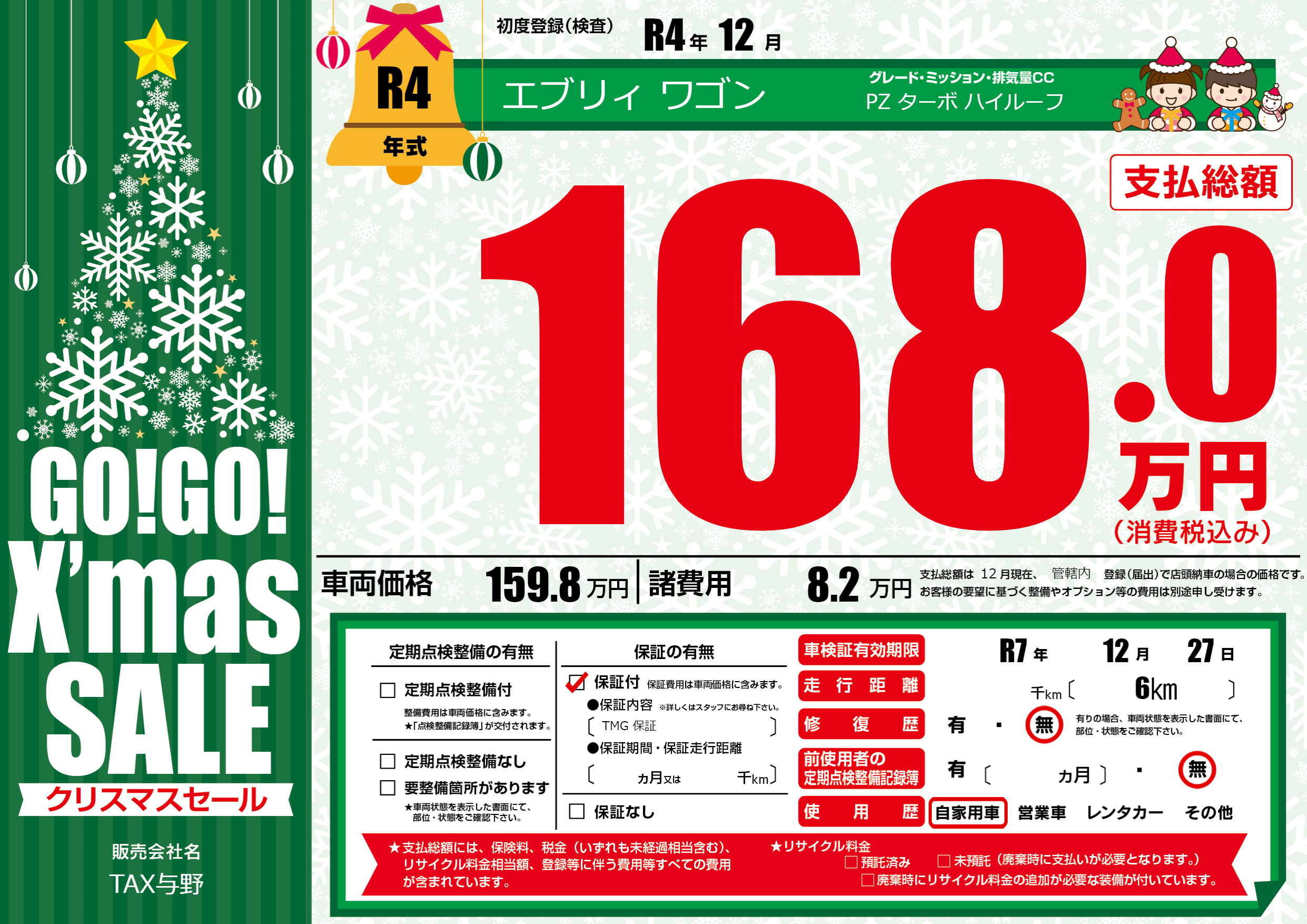 | 車検制限 | R7年 12月 27日 | ||