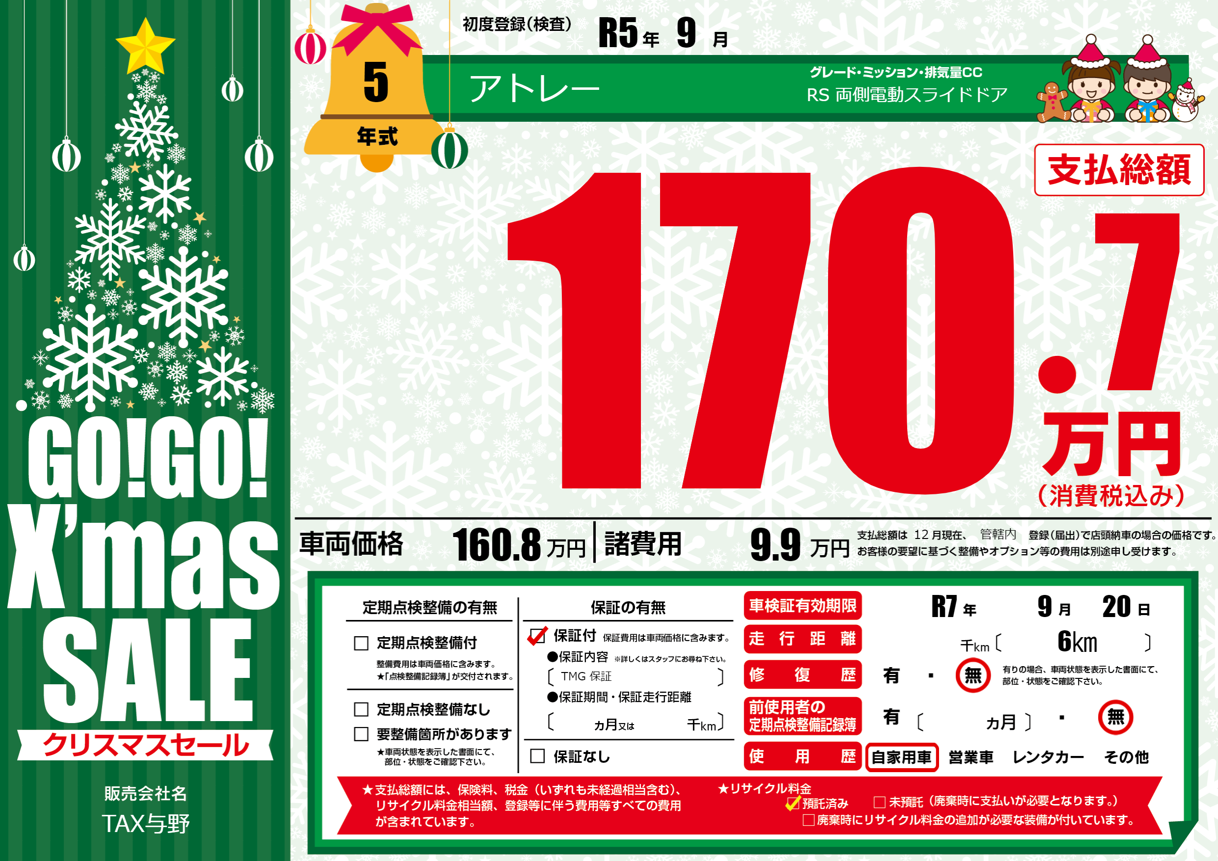 | 走行キロ | - | 初年度登録 | R5年9月 |