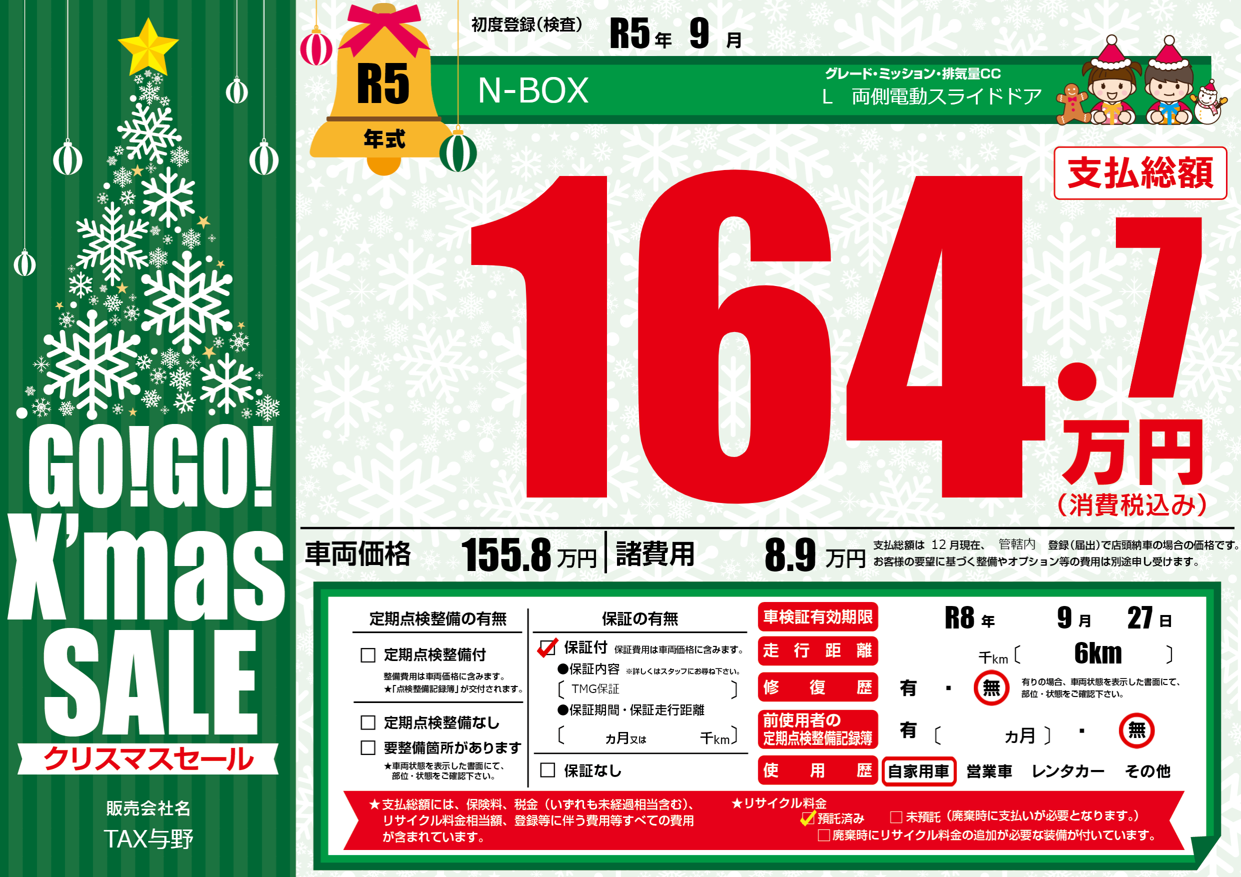 | 走行キロ | - | 初年度登録 | R5年9月 |