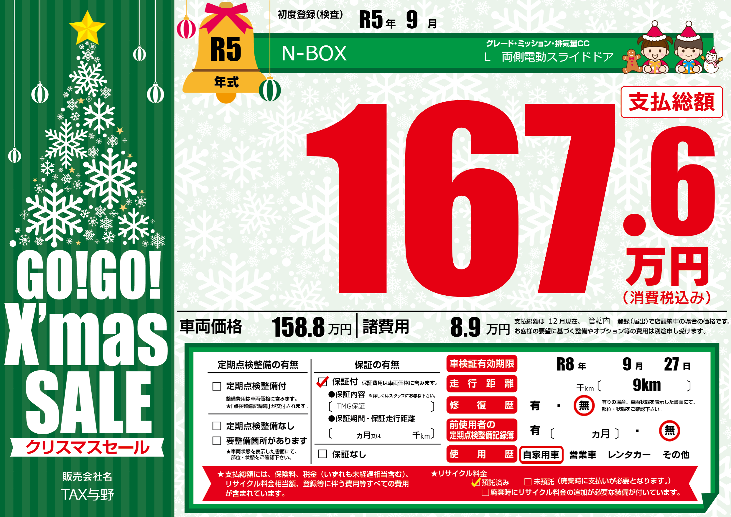 | 走行キロ | - | 初年度登録 | R5年9月 |