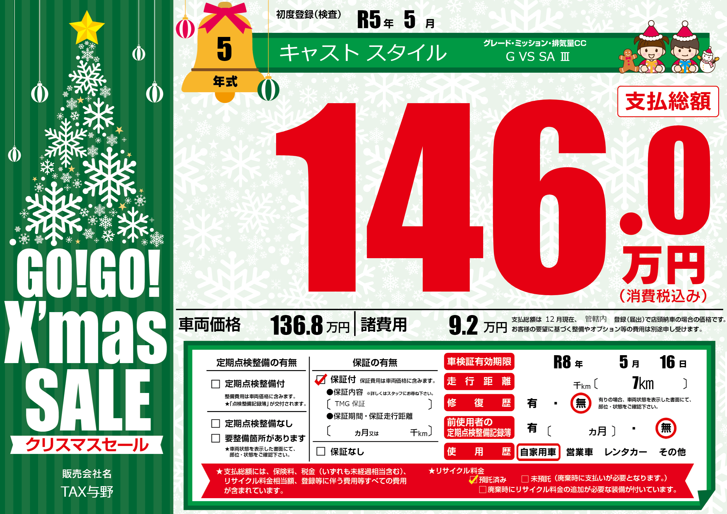 | 走行キロ | - | 初年度登録 | R5年5月 |