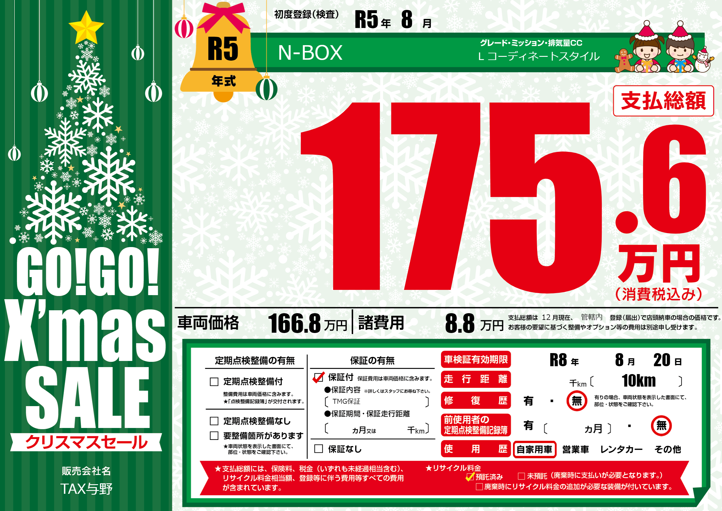 保証付き 保証内容(TMG保証) ---ヶ月または()千kmまで |