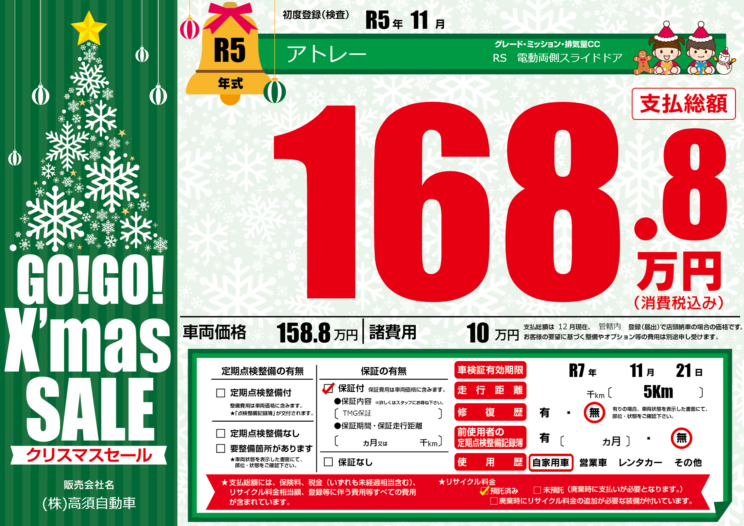 | 走行キロ | - | 初年度登録 | R5年11月 |