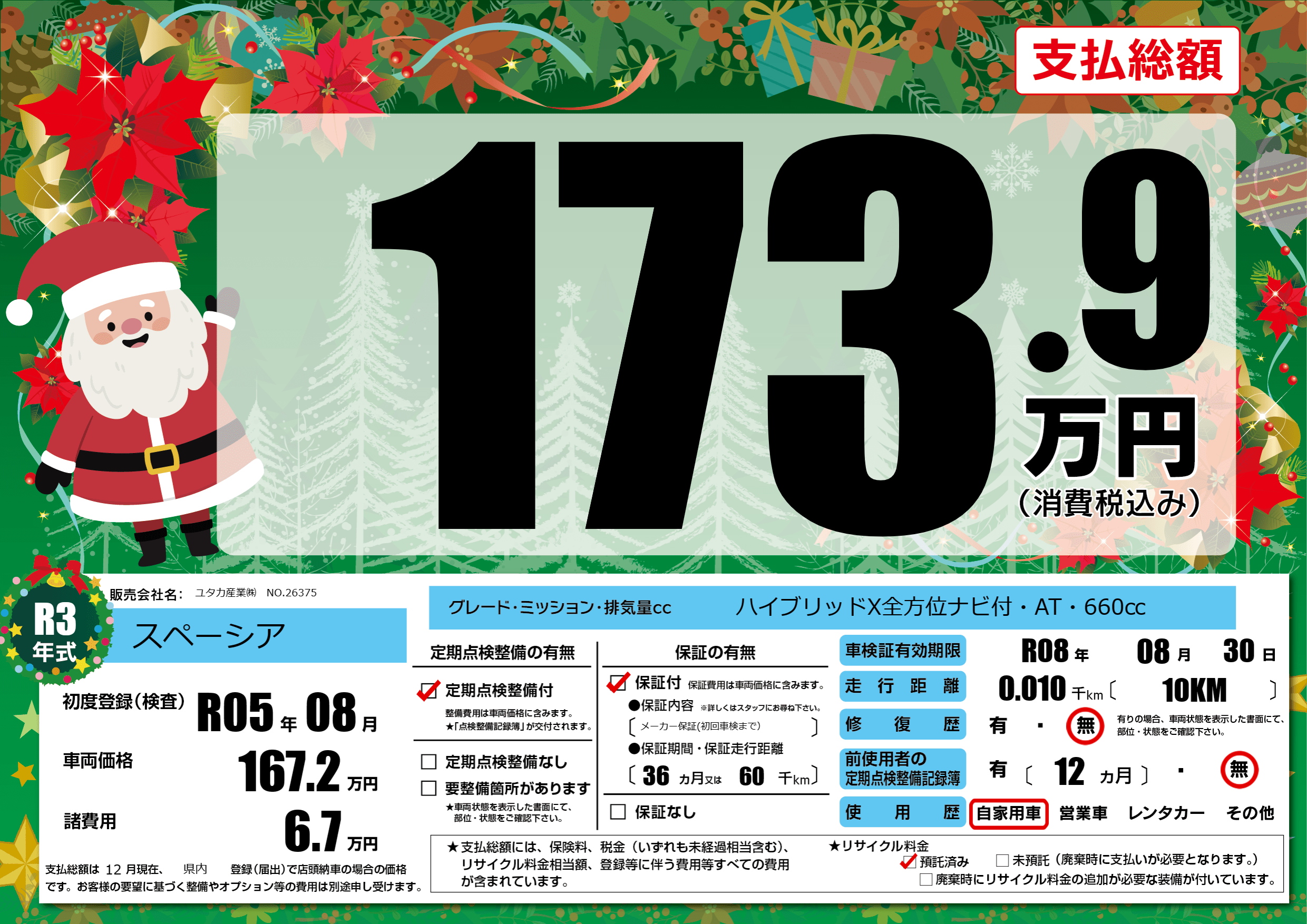 なし | 車検制限 | R08年08月30月 |