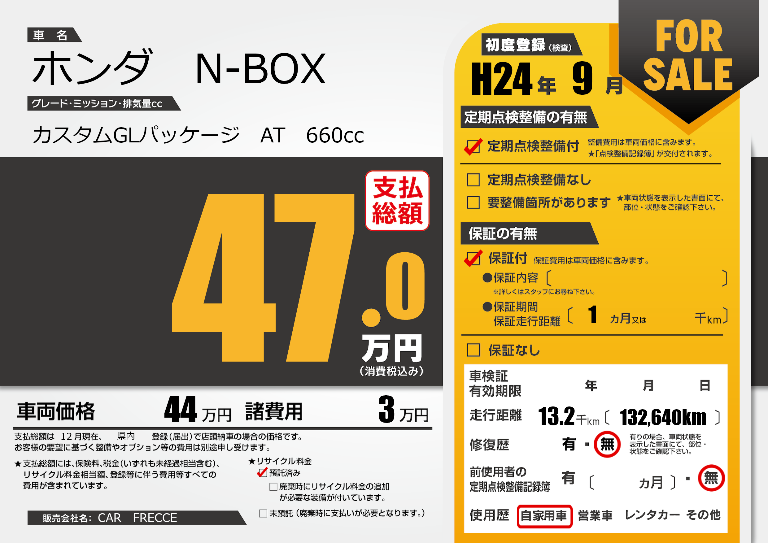 | 定期点検整備 | 定期点検整備あり | ||
