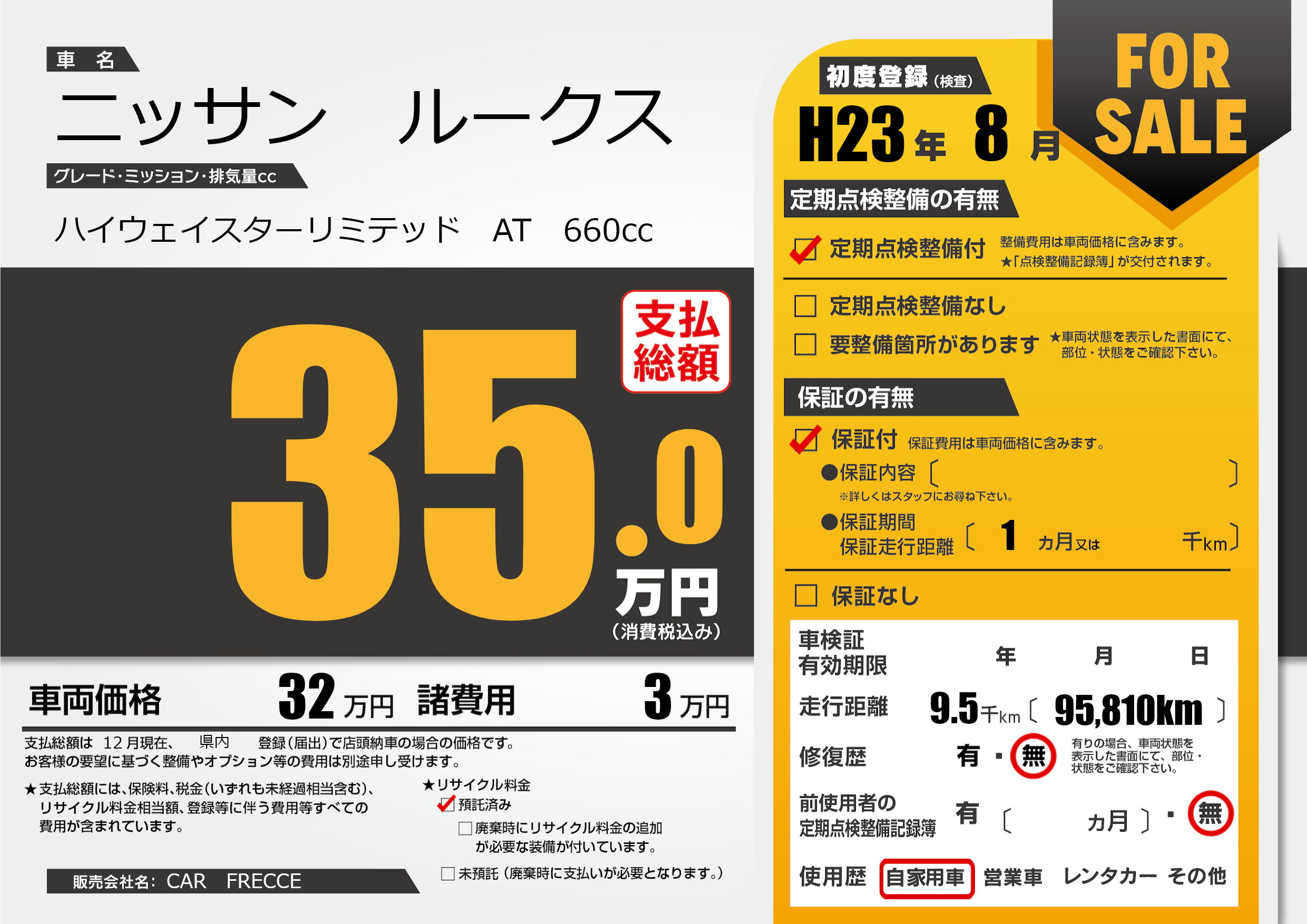 | 定期点検整備 | 定期点検整備あり | ||