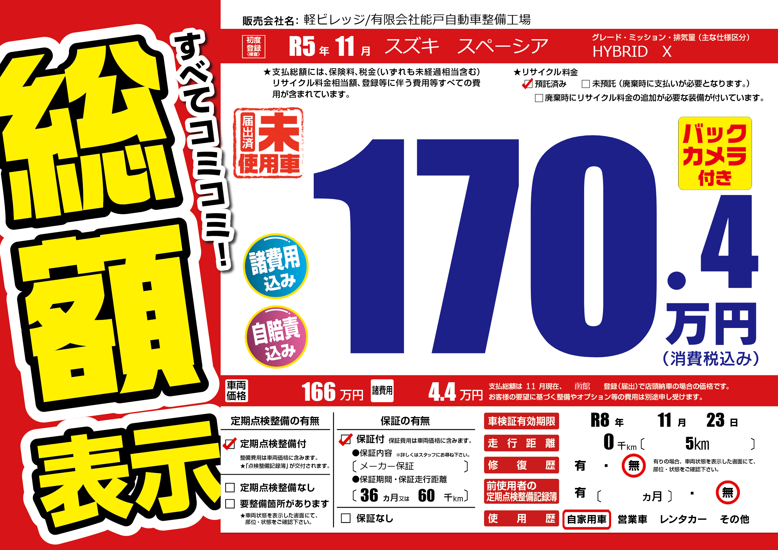 | 走行キロ | - | 初年度登録 | R5年11月 |