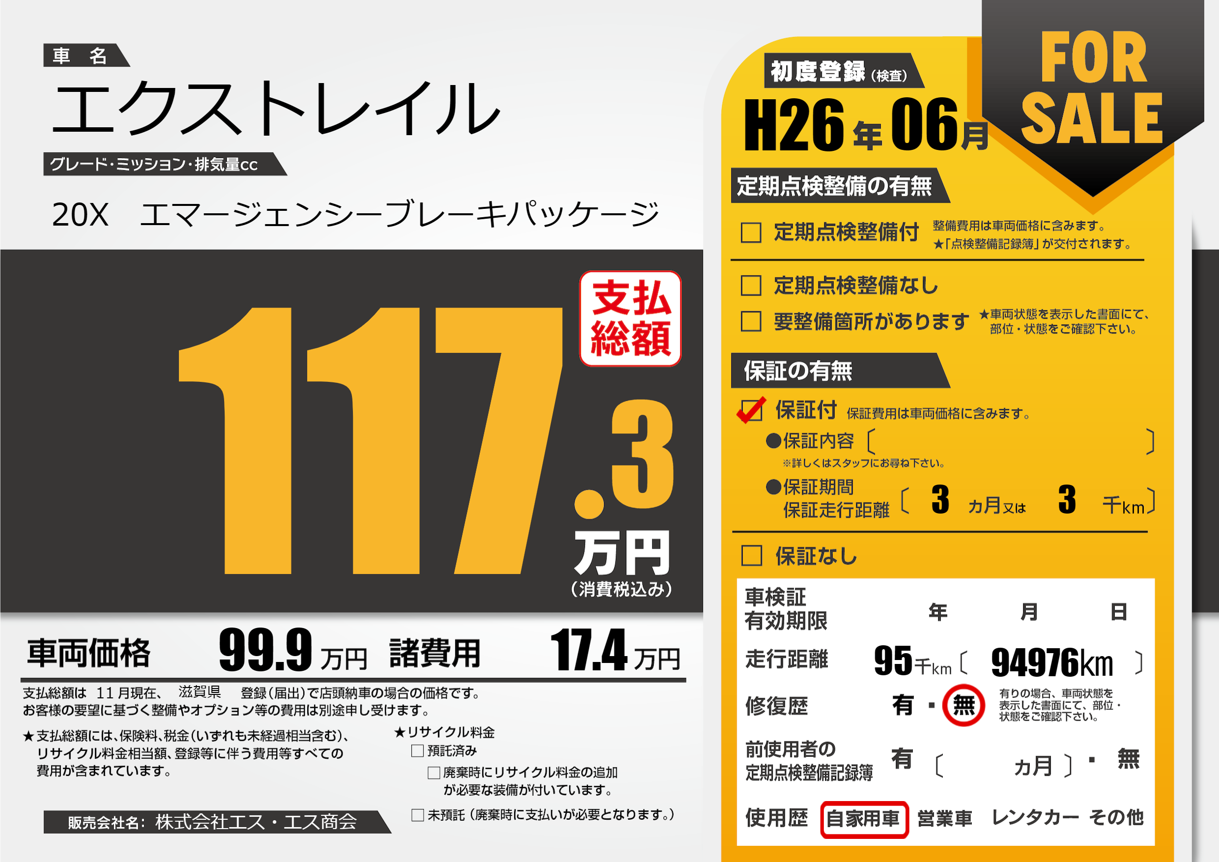 保証付き 保証内容(---) 3ヶ月または(3)千kmまで |