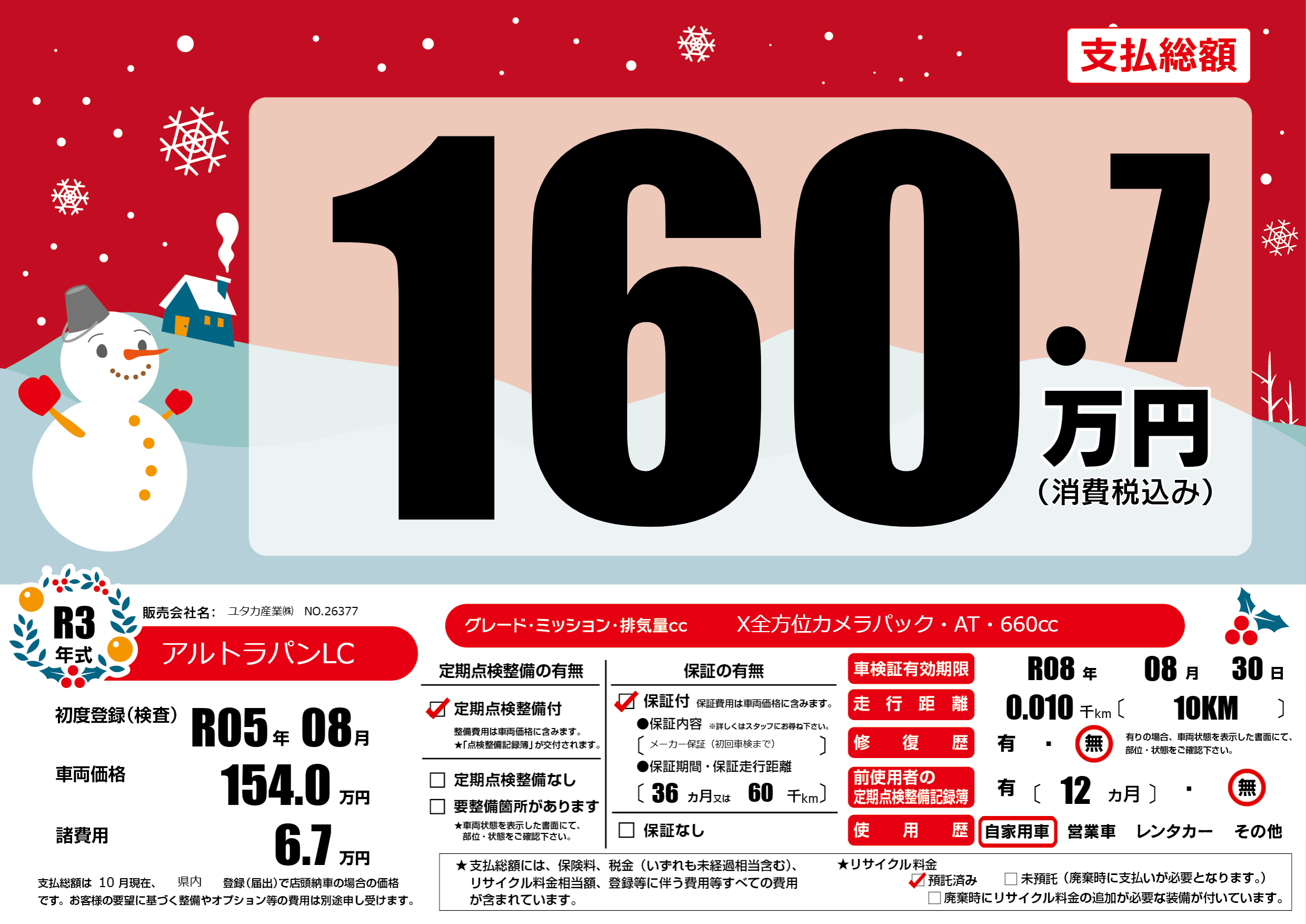 | 車名 | アルトラパンLC | グレード ミッション 排気量 |