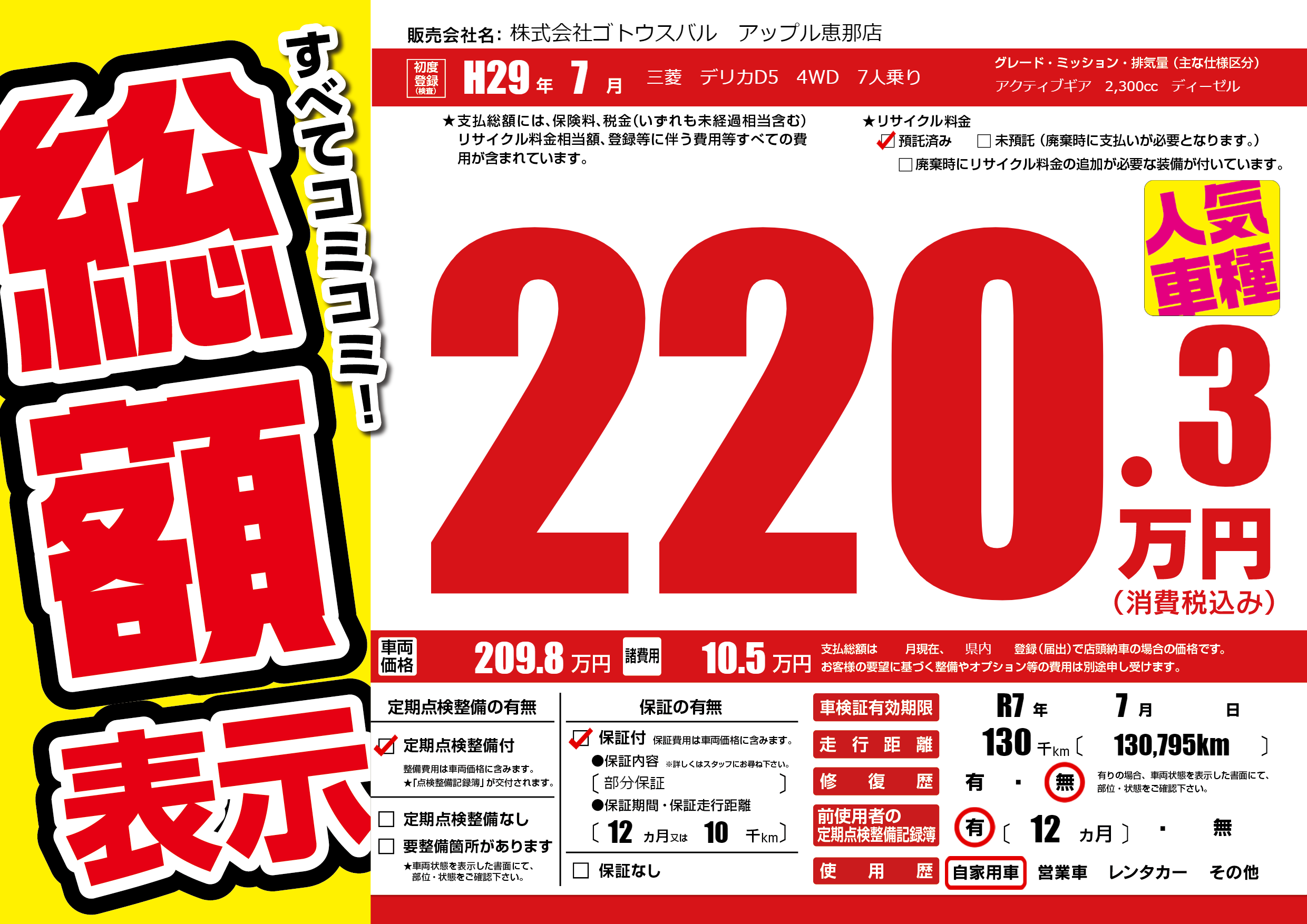 | 車検制限 | R7年 7月 - 日 | ||