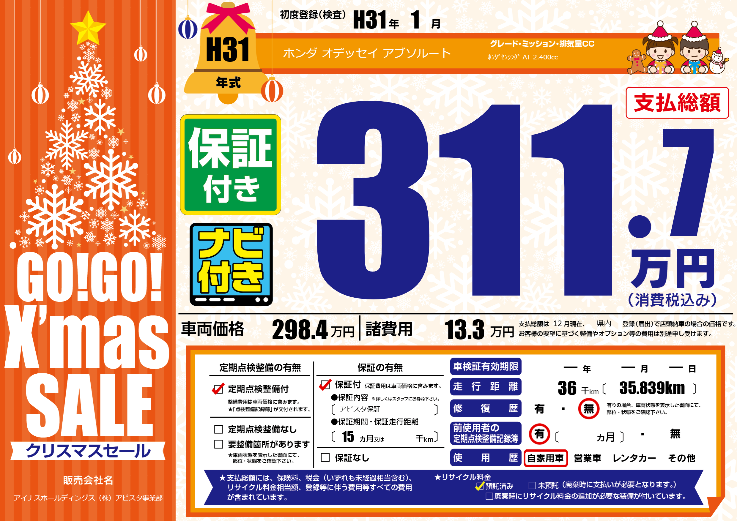 | 走行キロ | 3.6万km | 初年度登録 | H31年1月 |