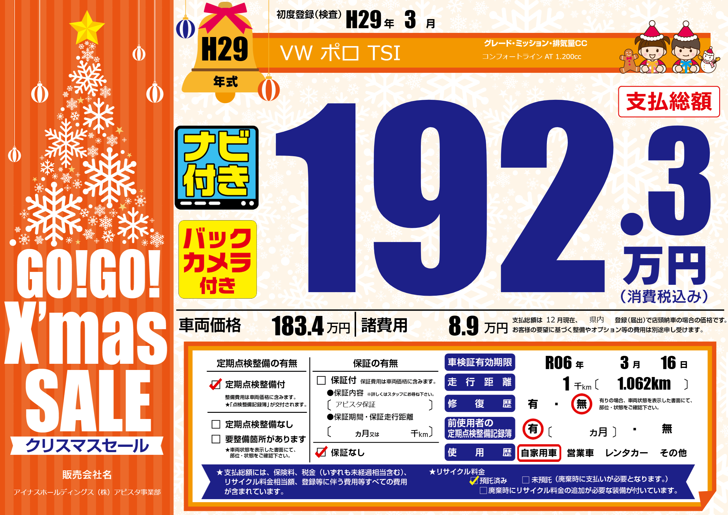 | 車名 | VW ポロ TSI | グレード ミッション 排気量 |