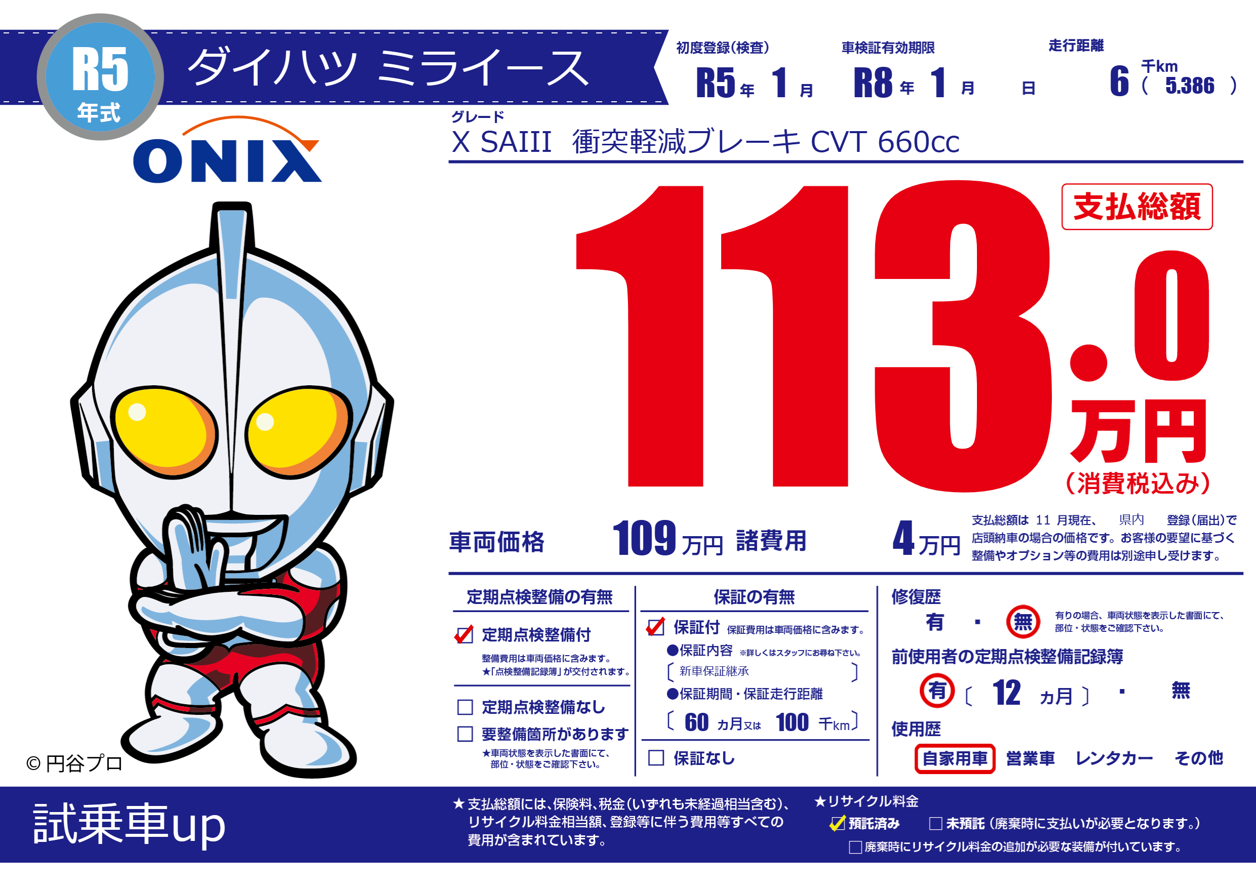 | 初年度登録 | R5年1月 | ||