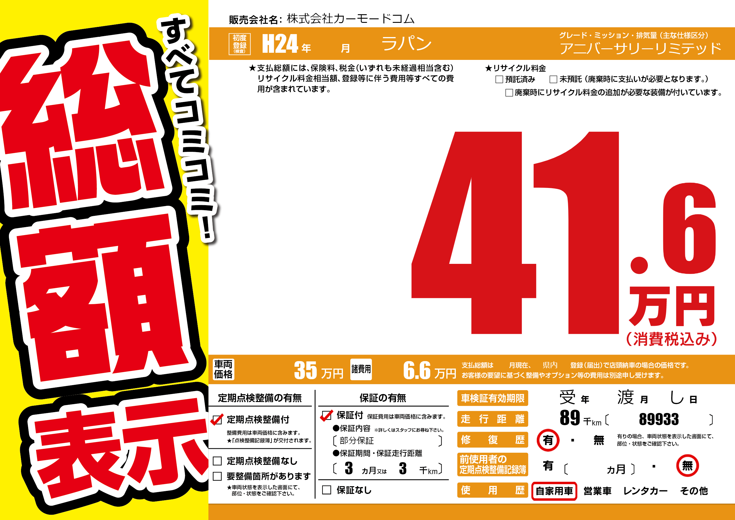 | 車名 | ラパン | グレード ミッション 排気量 |