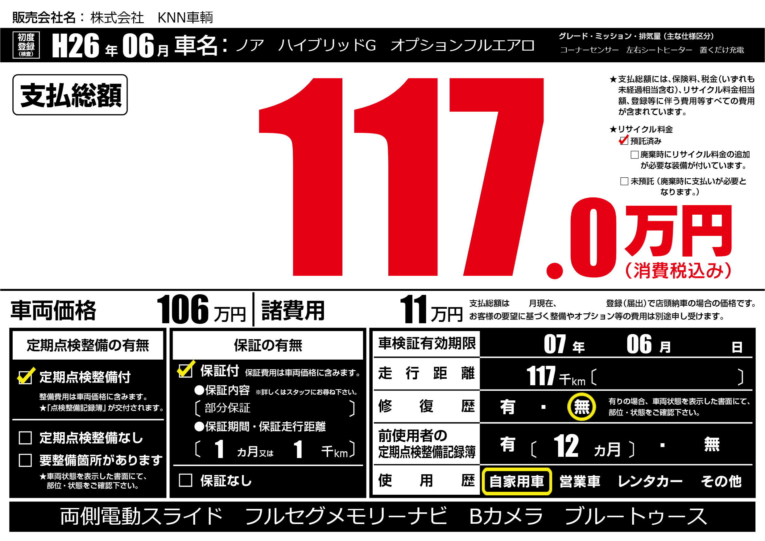 | 走行キロ | 11.7万km | 初年度登録 | H26年06月 |