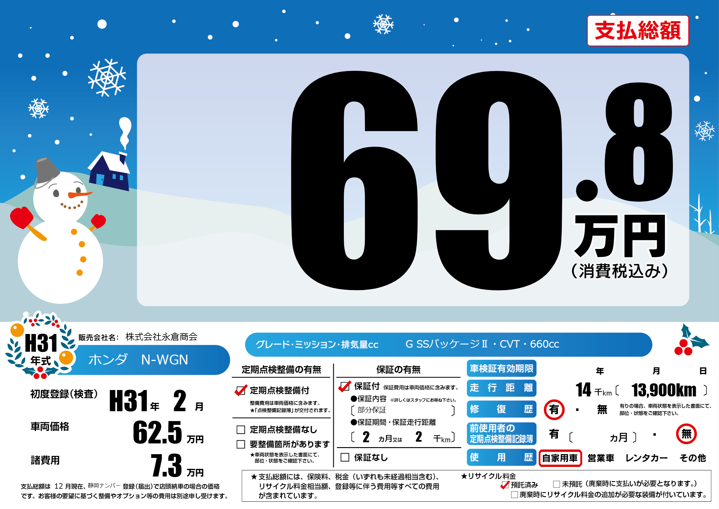 | 定期点検整備 | 定期点検整備あり | ||
