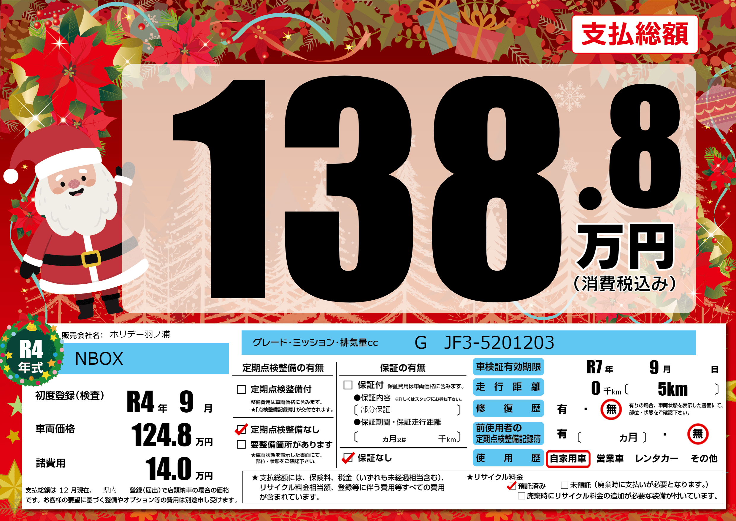 | 車名 | NBOX | グレード ミッション 排気量 |