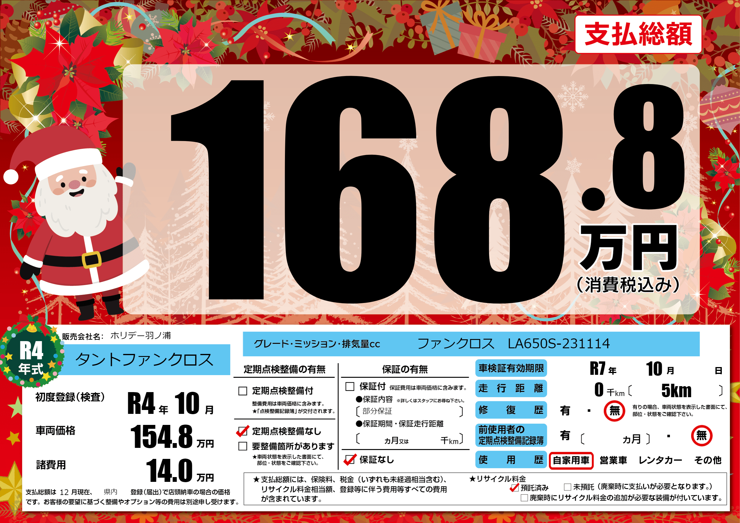 | 車名 | タントファンクロス | グレード ミッション 排気量 |